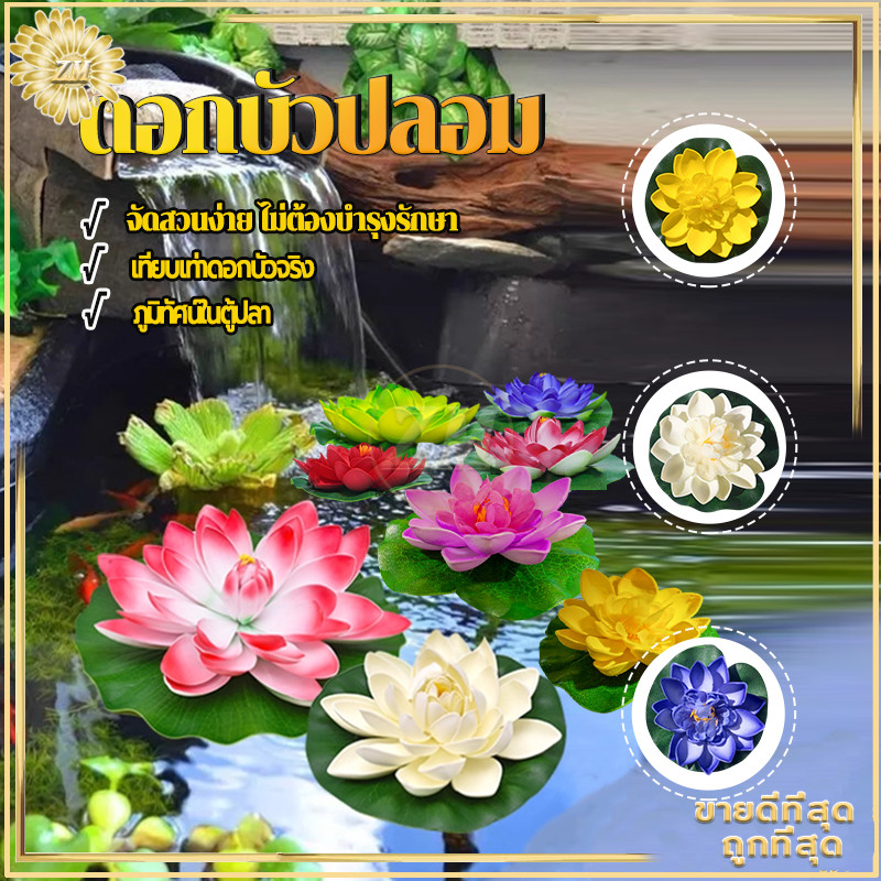 ดอกบัวลอยน้ำ ดอกบัวปลอม ดอกบัวมงคล10ซม/18ซมดอกบัว ใช้ตกแต่งบ่อน้ำ ใบบัวเหมือนจริง ตกแต่งสวน เสริมฮวงจุ้ย สระ 8สี