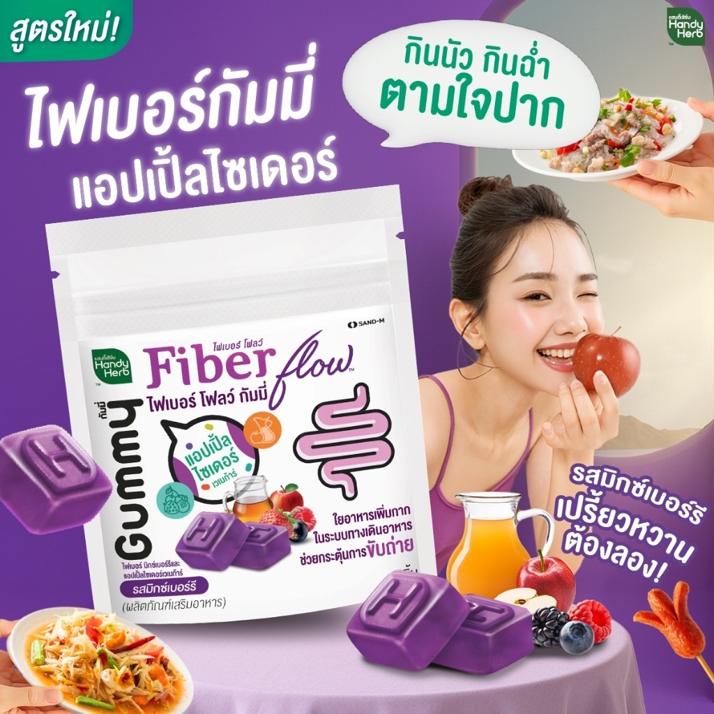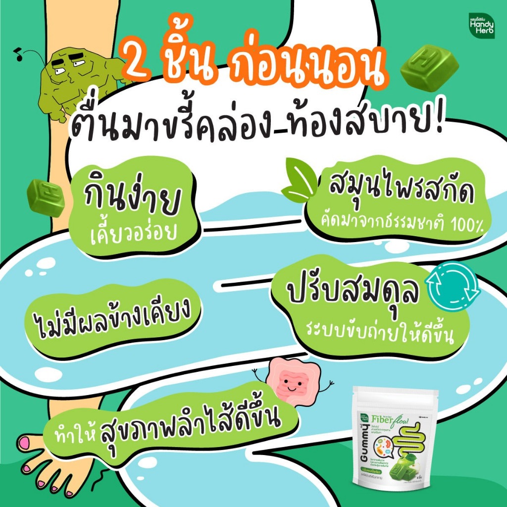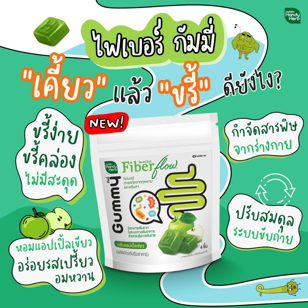 [1 กล่อง] HandyHerb Fiber Flow แฮนดี้เฮิร์บ ไฟเบอร์ โฟลว์ [6 ซอง] กลิ่นแอปเปิ้ลเขียว เยลลี่ไฟเบอร์