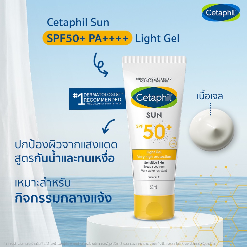 [แถมฟรีเทสเตอร์] Cetaphil Sunsceen Sun SPF 50+ PA++++ Light GEL / UVA/UVB Defense SPF 50+ ครีมกันแดด