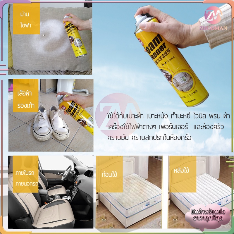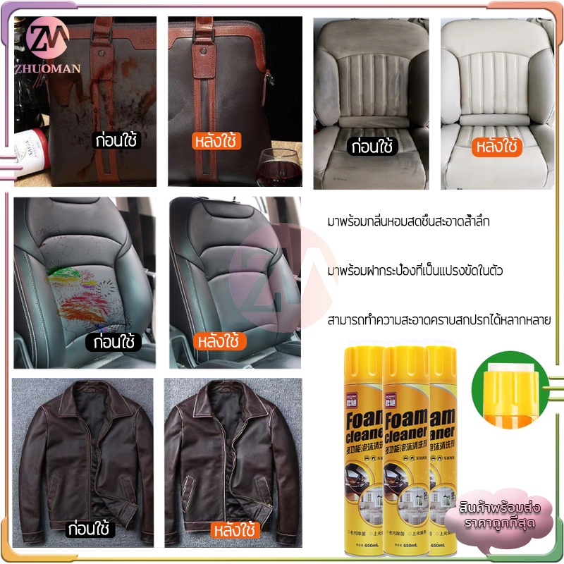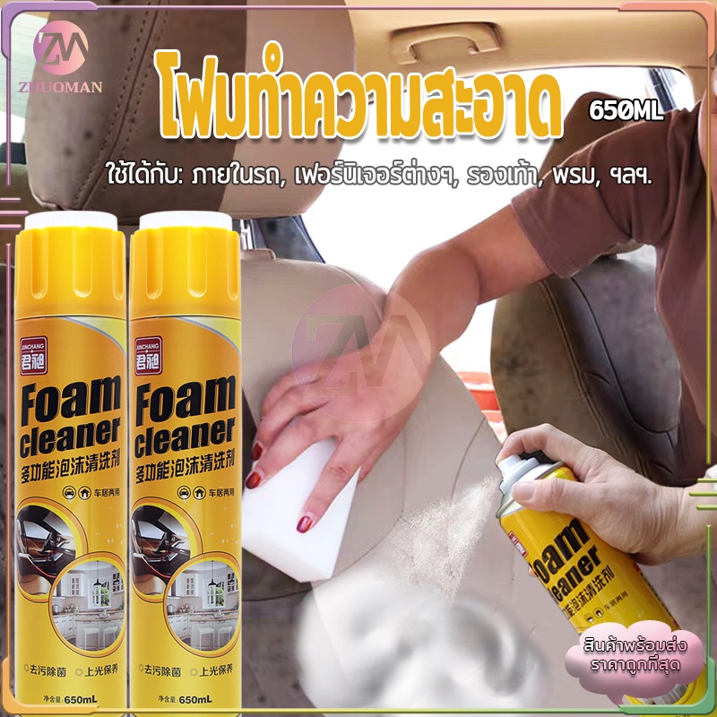 โฟมทำความสะอาด โฟมล้างรถ สเปรย์ทำความสะอาด น้ำยาขัดเบาะ สเปรย์ฉีดโซฟา น้ำยาทำความสะอาดเบาะหนัง Foam Cleaner 650ML