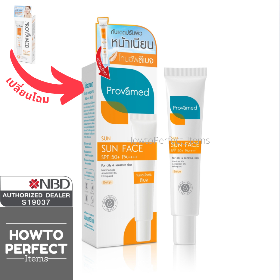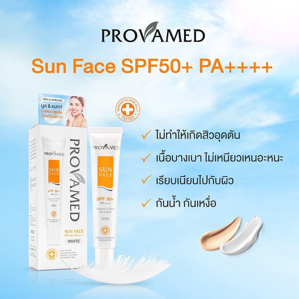 Provamed โปรวาเมด กันแดด SPF50 SunFace Sun Face ( 30 ml ) uv flawless defense