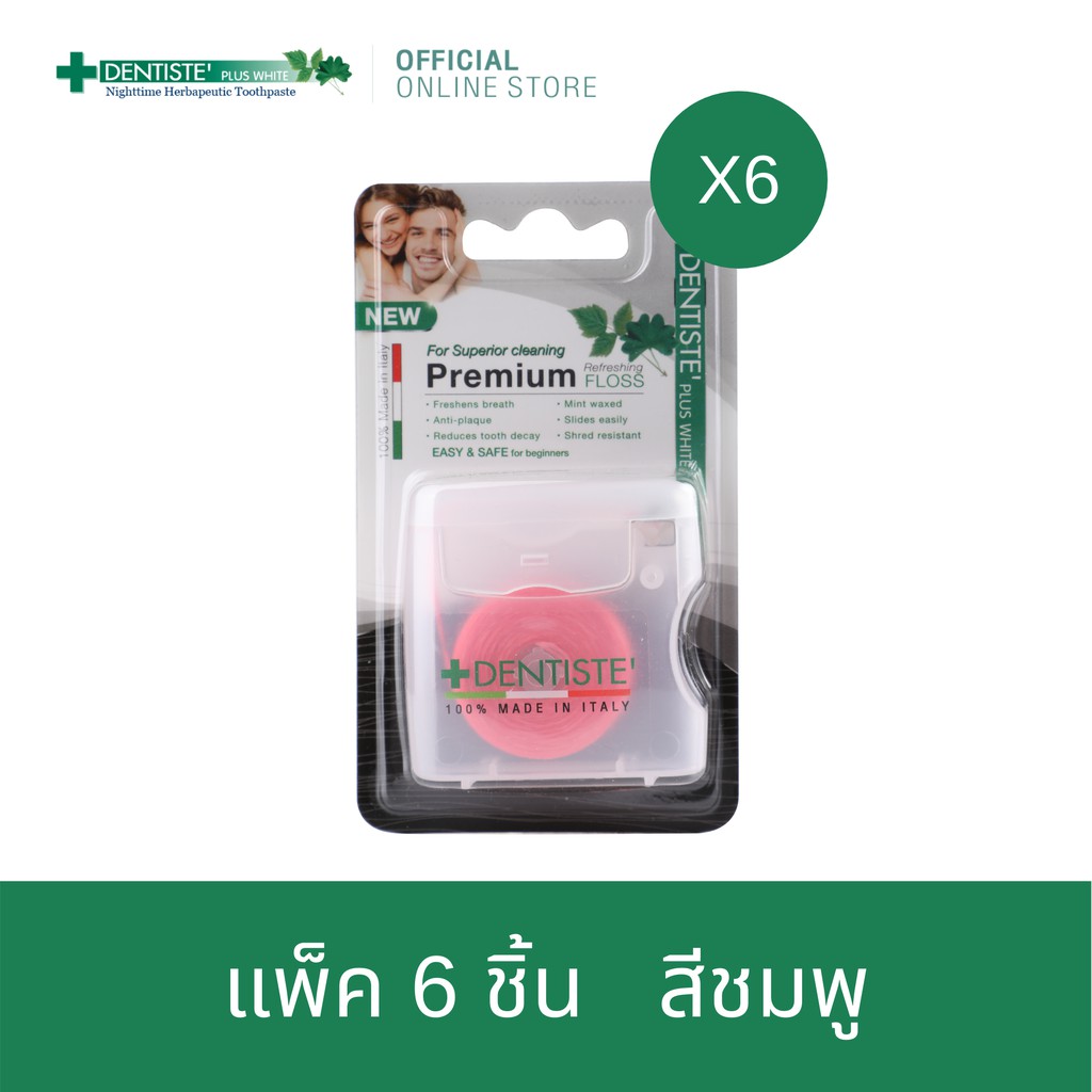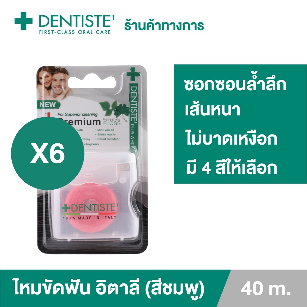 Dentiste' Dental Floss Italy 40 m.(ฺPink) เดนทิสเต้ ไหมขัดฟัน ทำความสะอาดคราบพลัค จับง่ายถนัดมือ (แพ็ค 6ชิ้น)