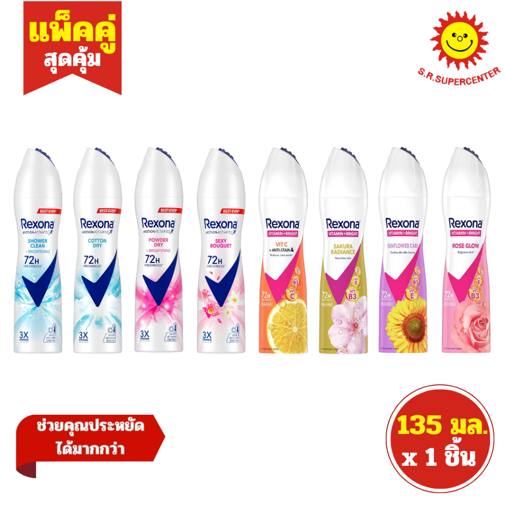 [ 1ชิ้น ] Rexona เรโซนา สเปรย์ ระงับกลิ่นกาย ขนาด 135 มล. (1ชิ้น) คละกลิ่น