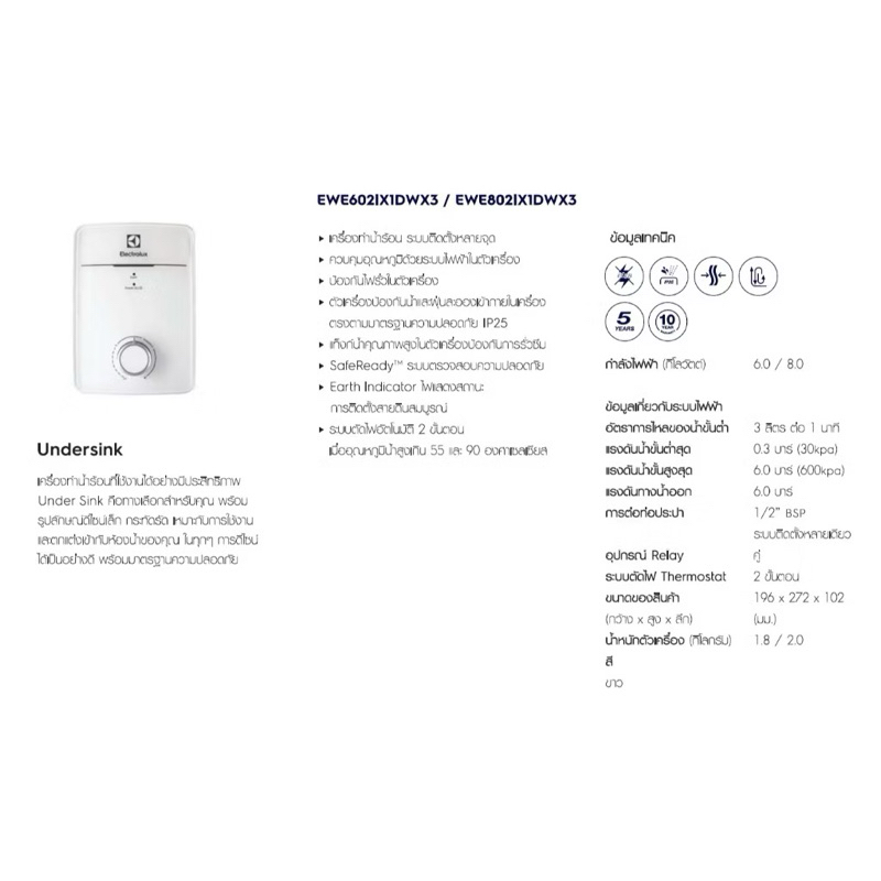 เครื่องทำน้ำร้อนแบบหลายจุด รุ่น UltimateHome 300 กำลังไฟ 6000w ยี่ห้อ Electrolux รุ่น EWE602IX1DWX3