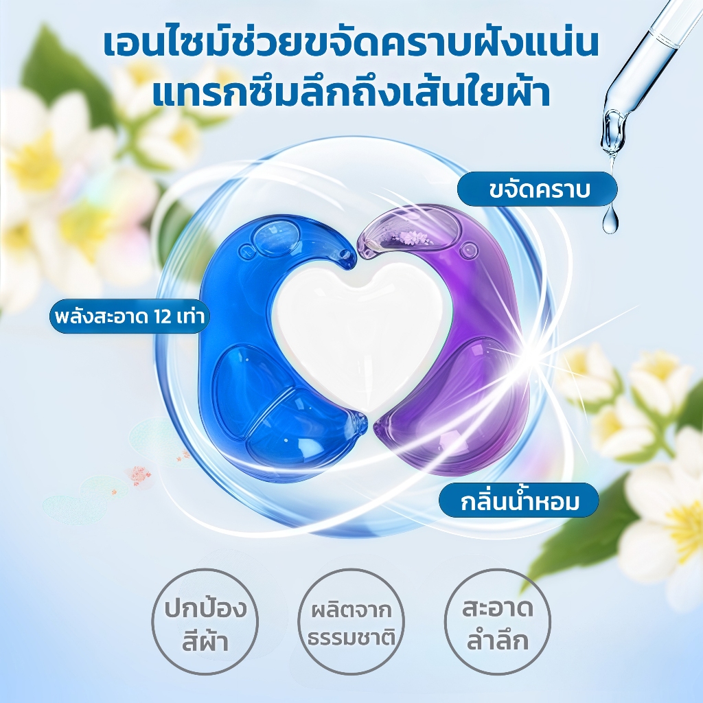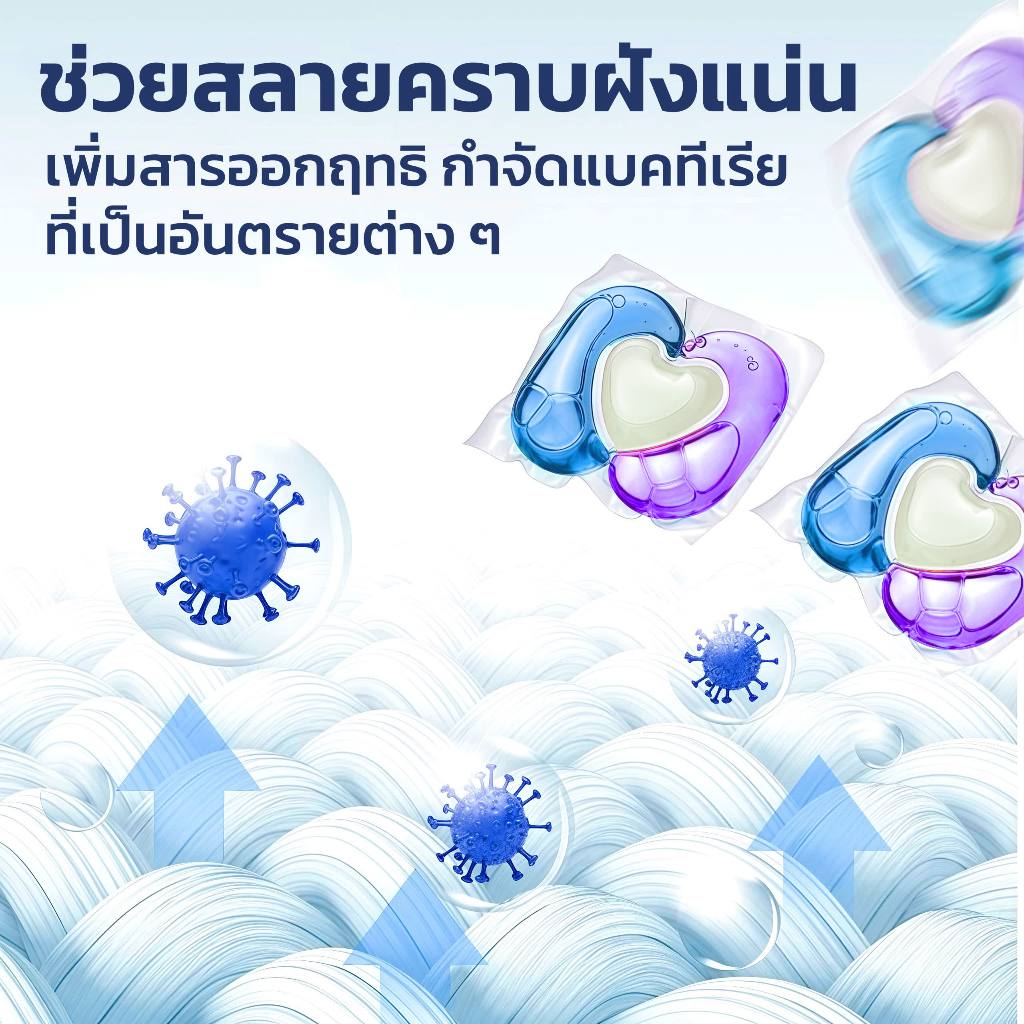 เจลบอลซักผ้า 3in1 เข้มข้น 8 เท่า ขจัดคราบฝังแน่น (50 ลูก) น้ำยาซักผ้า+น้ำยาปรับผ้านุ่ม+น้ำยาฆ่าเชื้อ