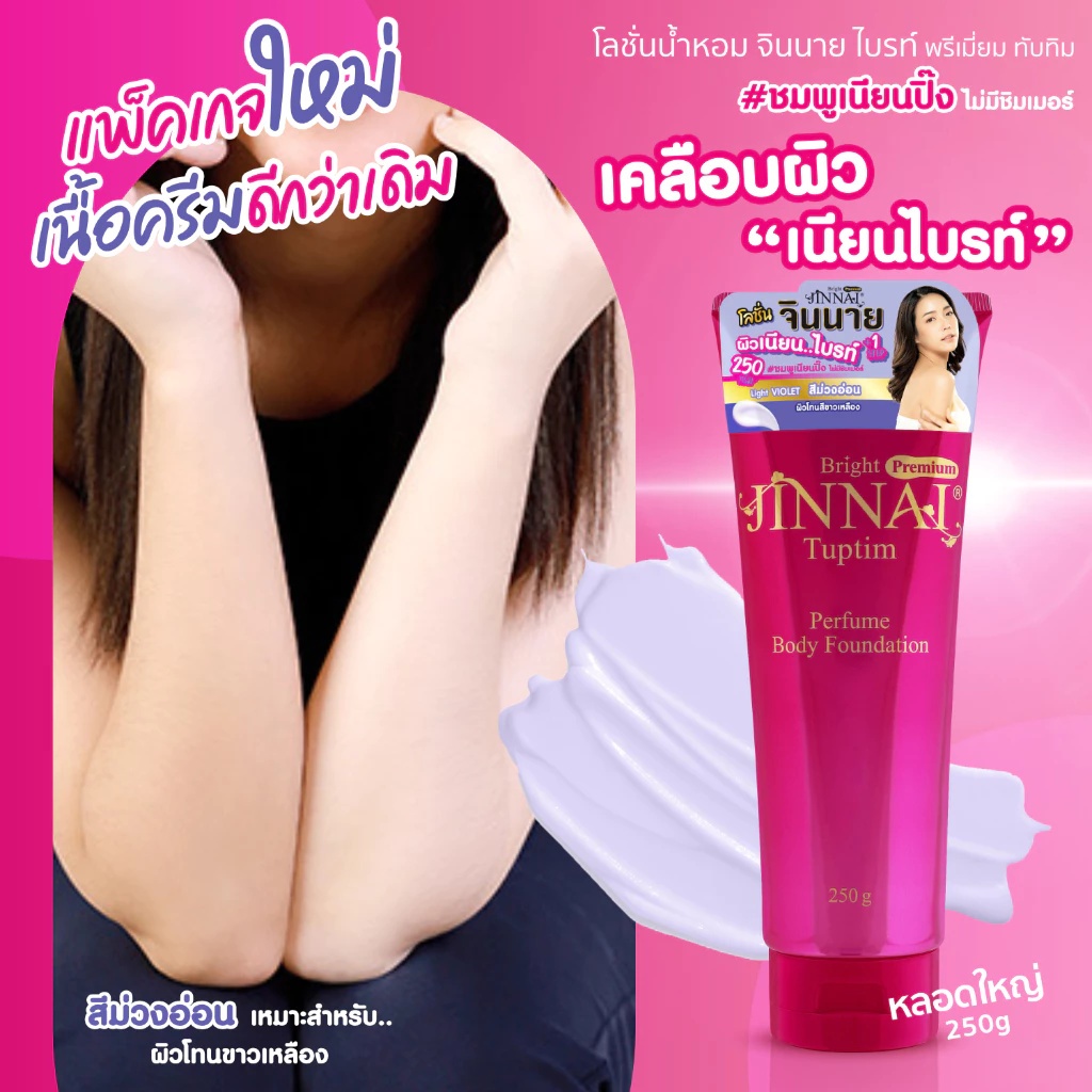 (แพ็คเกจใหม่) JINNAI จินนายโลชั่น เคลือบผิวขาว หลอดชมพูไม่มีชิมเมอร์ #ชมพูเนียนปิ๊ง 80/250 g.