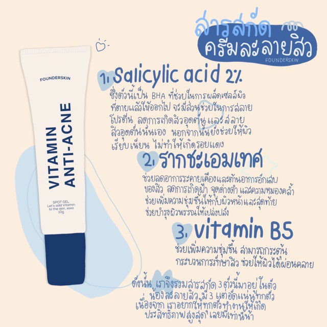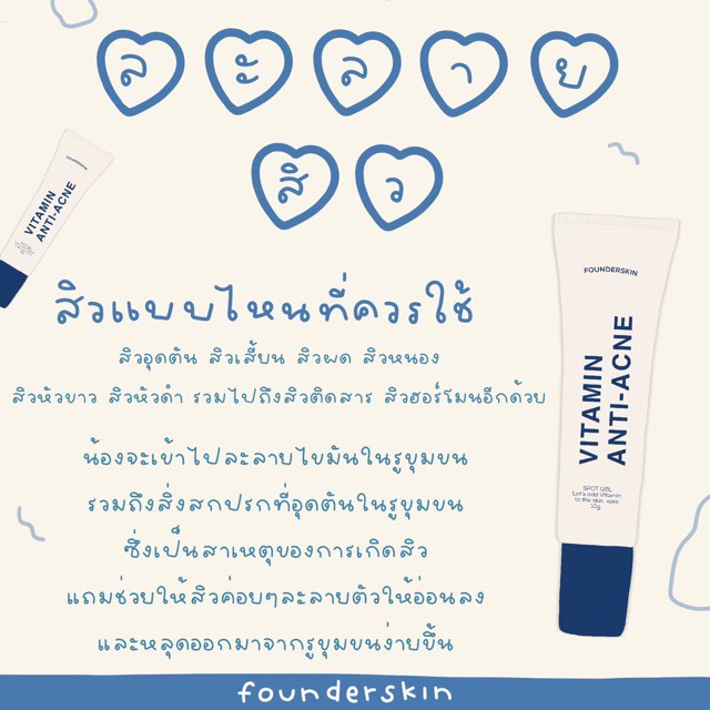 *(เล็ก) แพคเกจใหม่ เจลละลายสิว ฟาวเดอร์ Founderskin Vitamin An-ti Acne 10 กรัม