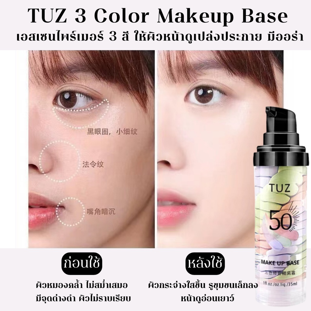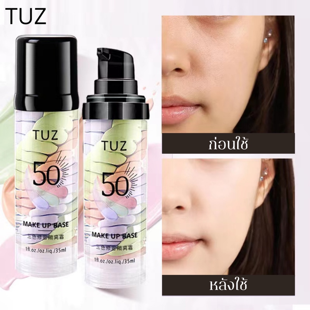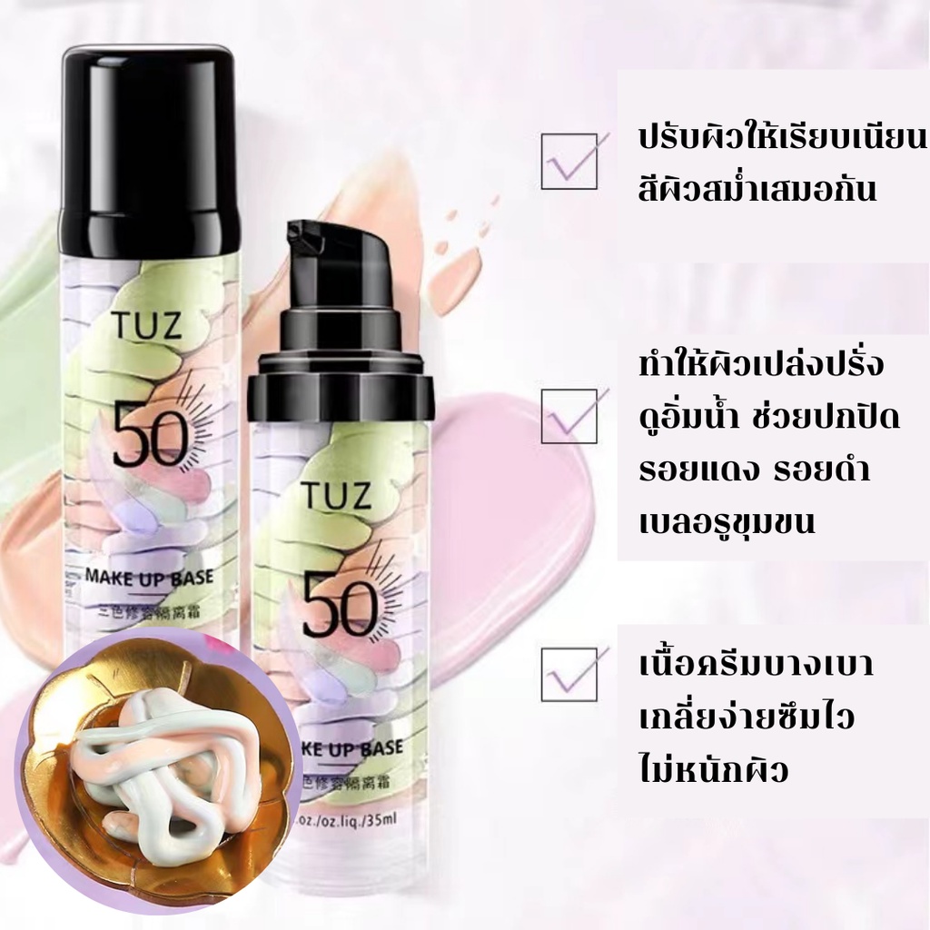 TUZ 0105 เบสไพรเมอร์ 3 สี ไพรเมอร์เบลอรูขุมขน คุมมัน รองพื้น บีบีครีม กันน้ำ กันเหงื่อ ให้ผิวหน้าเรียบเนียน กระจ่างใส