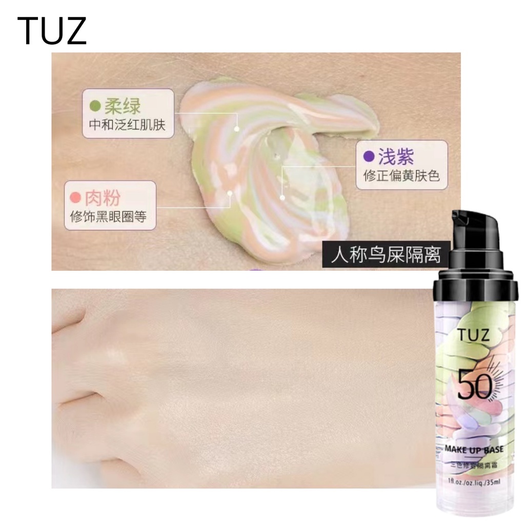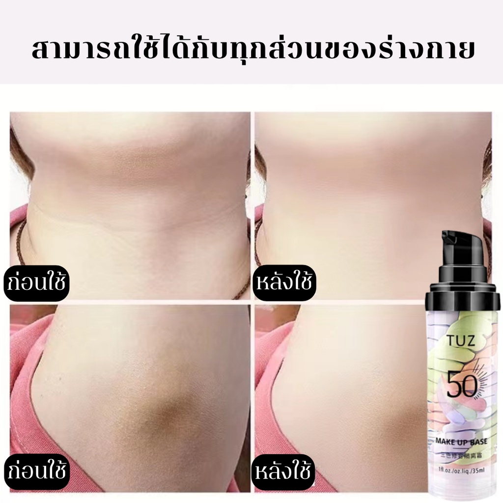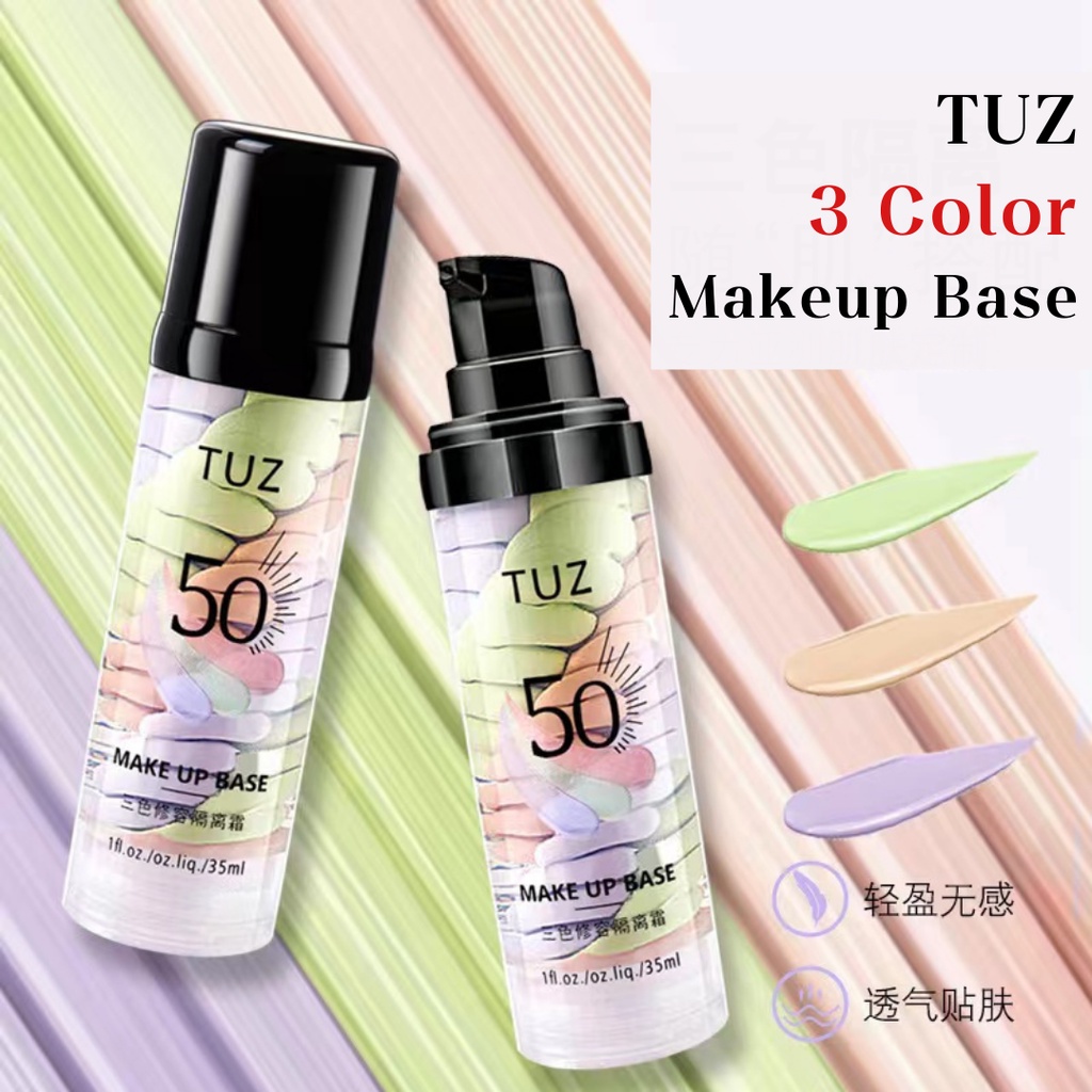 TUZ 0105 เบสไพรเมอร์ 3 สี ไพรเมอร์เบลอรูขุมขน คุมมัน รองพื้น บีบีครีม กันน้ำ กันเหงื่อ ให้ผิวหน้าเรียบเนียน กระจ่างใส