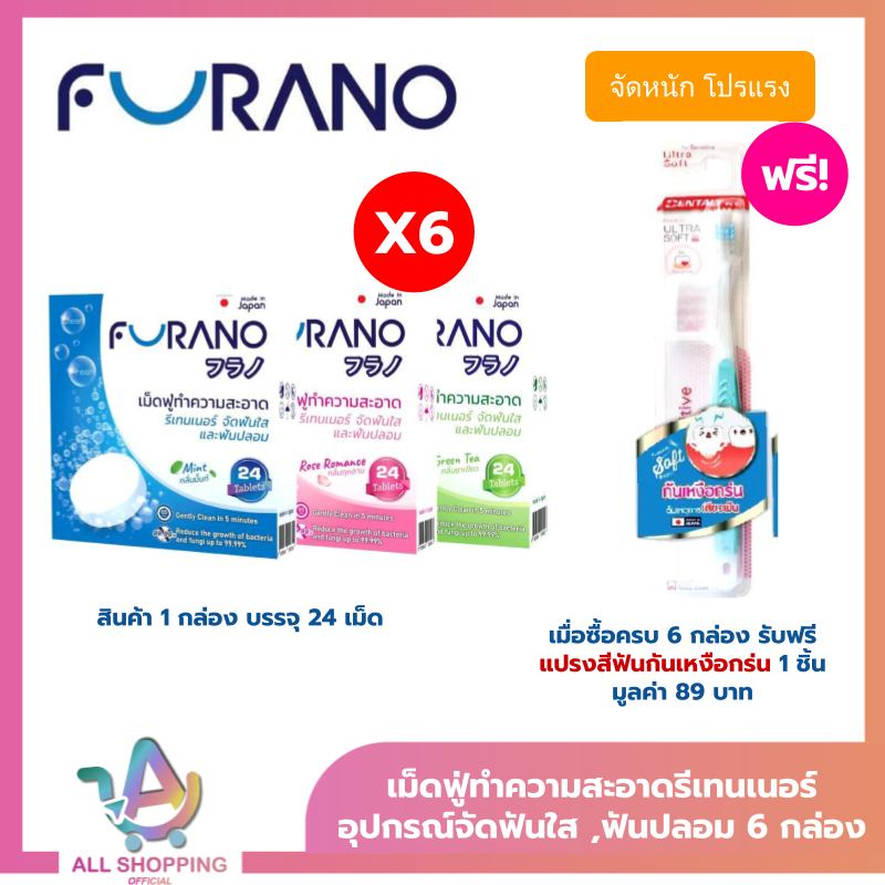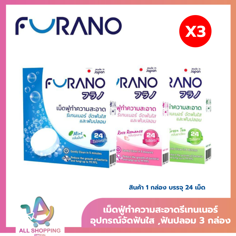 (แพค 3) Furano เม็ดฟู่ทำความสะอาดรีเทนเนอร์ และฟันปลอม 3 กล่องซื้อครบ 6 กล่องแถมฟรีแปรงสีฟันกันเหงือกร่น 1 ชิ้น