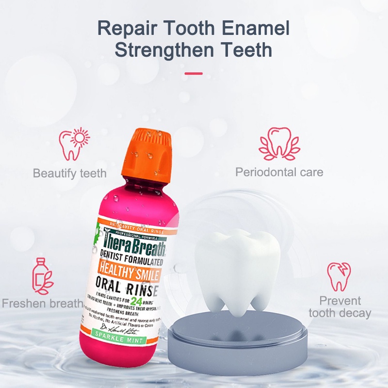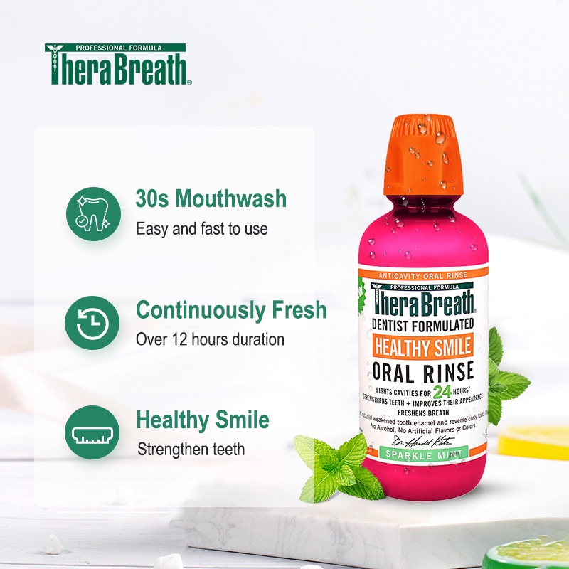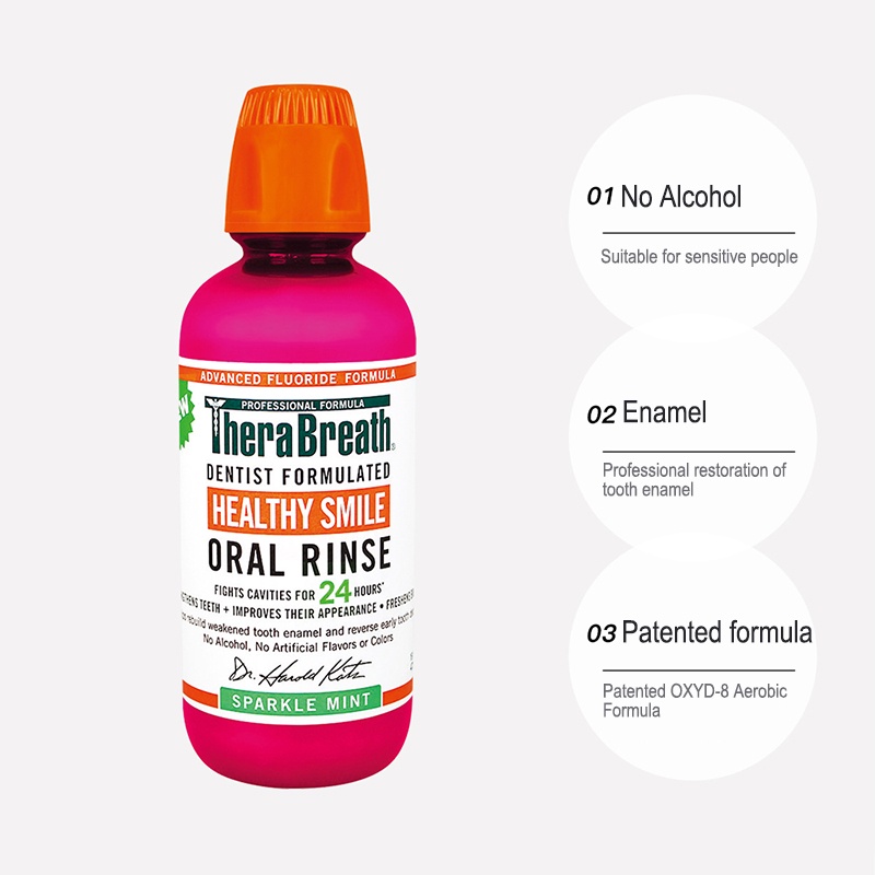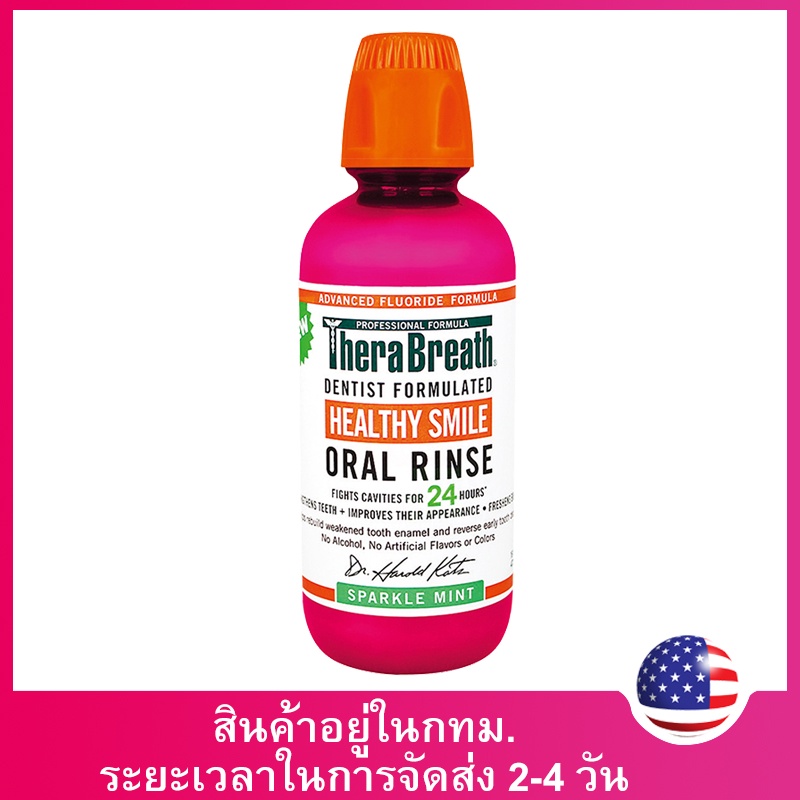 [1091] น้ำยาบ้วนปาก สูตรปราศจากแอลกอฮอล์Sparkle Mint TheraBreath Oral Rinse 473ml Healthy Smile