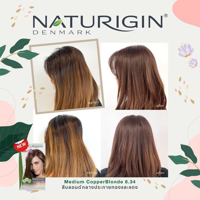 Naturigin 6.34 Medium Copper Blonde Permanent Organic Hair Color Dye สีบลอนด์กลางประกายทองและแดง สีผมออร์แกนิค (115 ml)