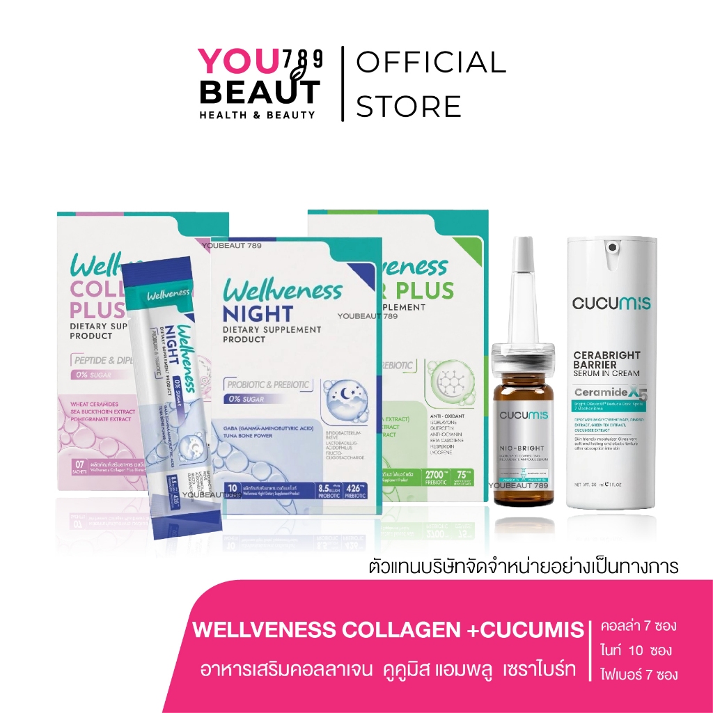 (M/ของแท้) WELLVENESS CUCUMIS นีโอไบรท์ แอมพลูเซรั่ม เซราไบร์ท CERABRIGHT เวลวีเนส ไนท์ คอลลาเจน ไฟเบอร์พลัส