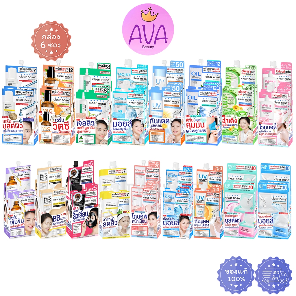 (6ซอง/กล่อง) Clear nose เคลียร์โนส เซรั่ม ไฮยา BB โทนเนอร์แพด กันแดด คลีนเซอร์ เจลสิว มอยส์ ว่าน