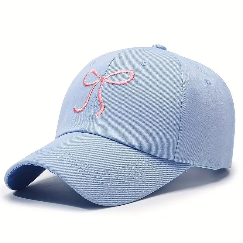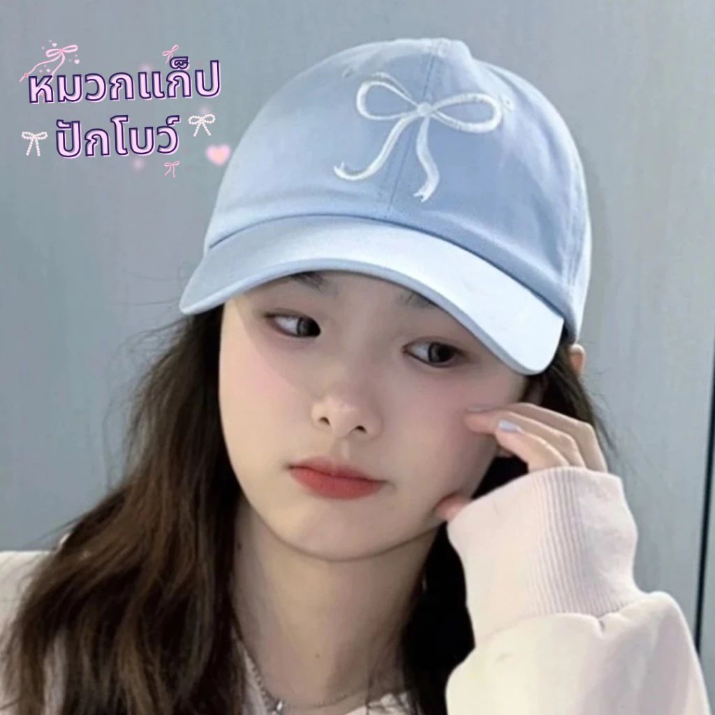 หมวกแก็ป ผู้หญิง (สไตล์เกาหลี) ลายโบว์ พร้อมสายปรับ สีฟ้า