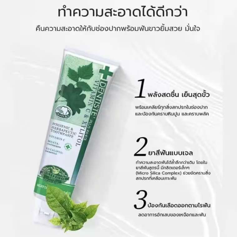 เดนทิสเต้ [3-แพ็ค] ยาสีฟันฟอกสีฟันพรีเมี่ยมธรรมชาติ ขจัดคราบพลัค ลดอาการเหลือง และทำให้ลมหายใจสดชื่น
