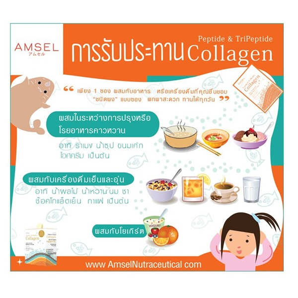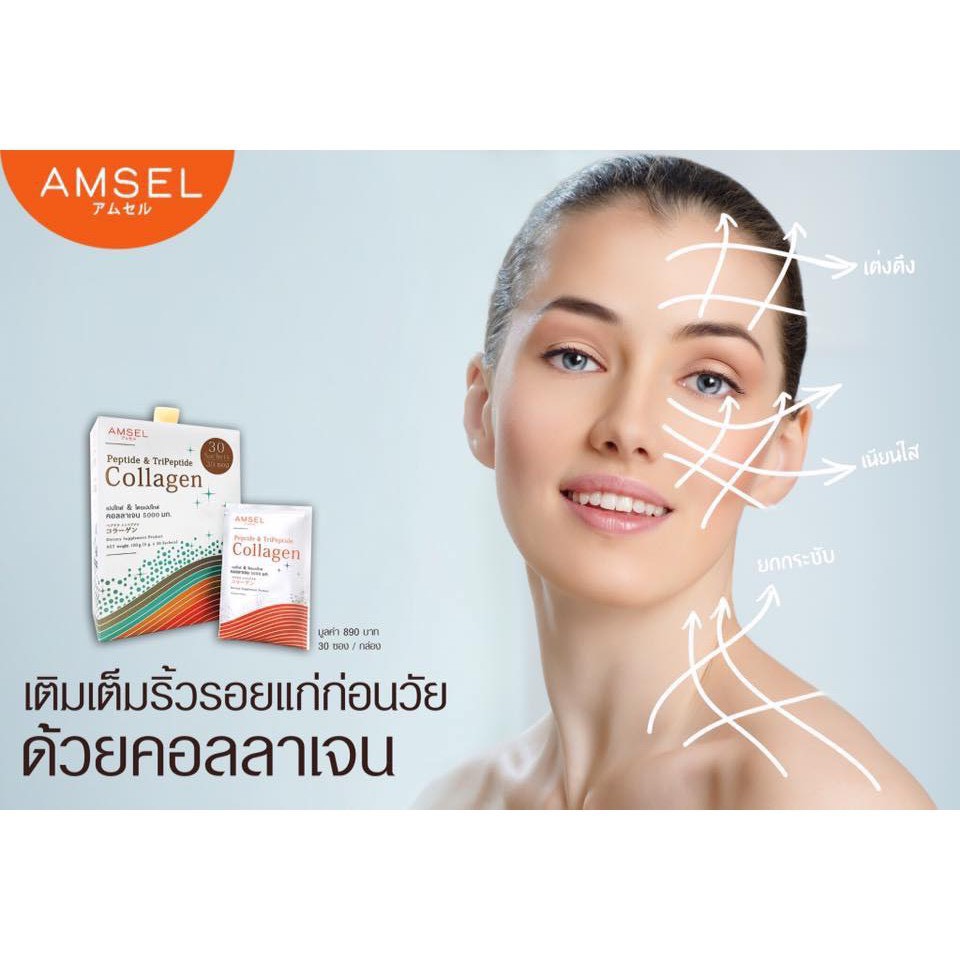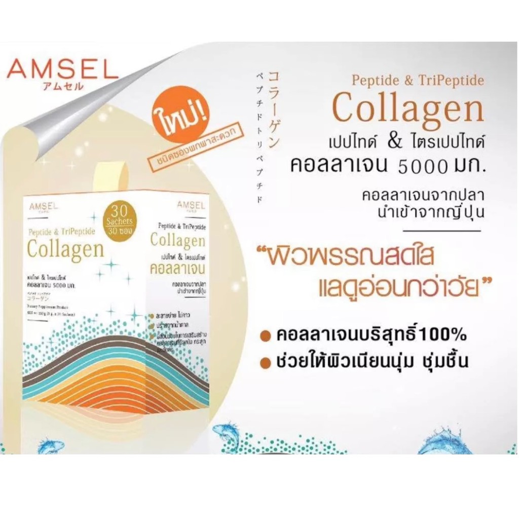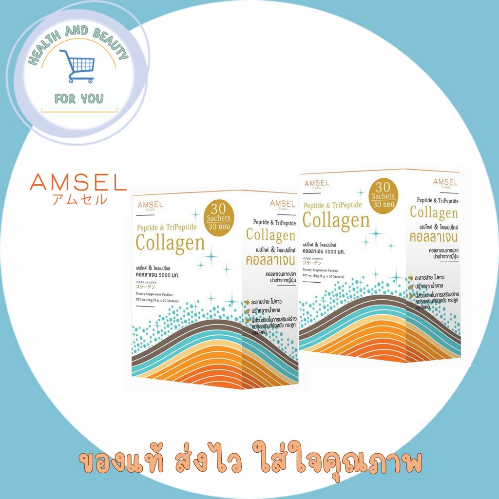 (2กล่อง) Amsel Collagen (Peptide& Tripeptide ) 5000 mg (แอมเซล เปปไทด์ & ไตร์เปปไทด์ คอลลาเจน 5,000 มก. บรรจุ 30 ซอง