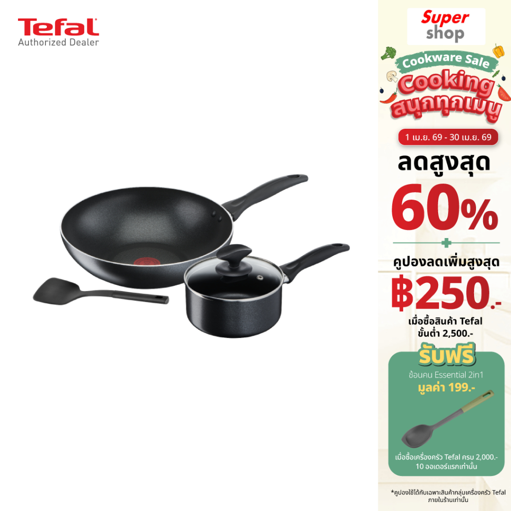 Tefal ชุดเครื่องครัว 4 ชิ้น รุ่น B225S405 กระทะก้นลึก 28 ซม. หม้อด้ามพร้อมฝาแก้ว 16 ซม. พร้อม ตะหลิว 1 ชิ้น