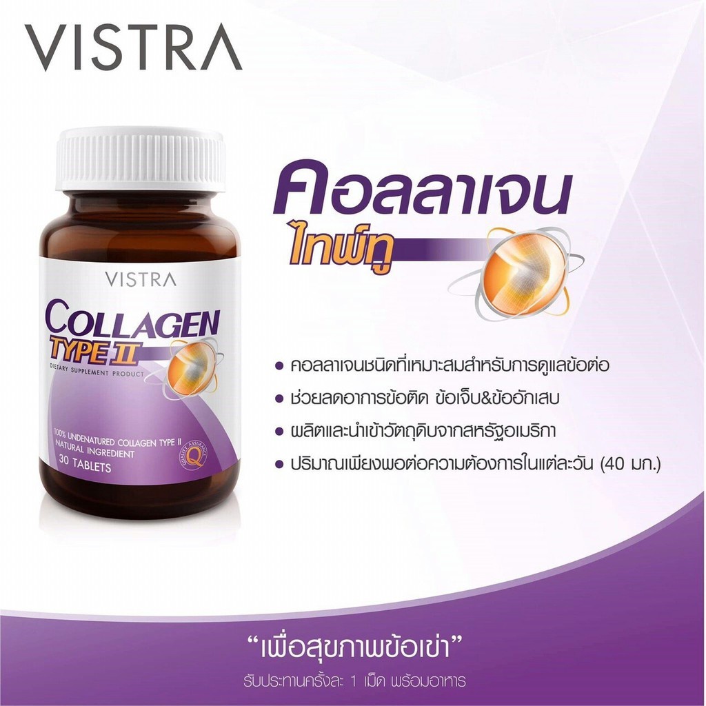 Vistra BON-ACTIV UC-II 30 เม็ด วิสทร้า อัพเกรดคุณภาพ ด้วยลิขสิทธิ์ UC-II จาก Lonza USA บำรุงกระดูก ลดอาการปวดข้อ ปวดเข่า