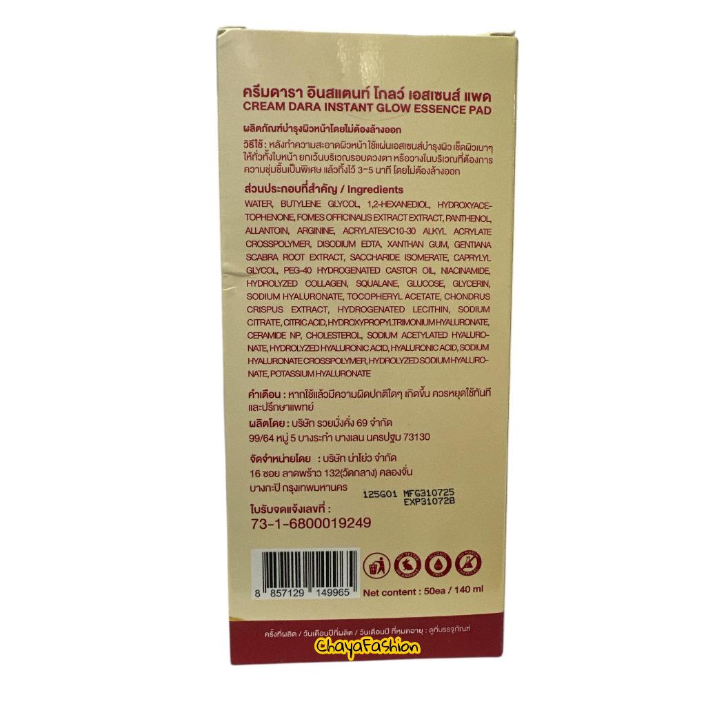 *SALE* Cream Dara ครีมดารา อินสแตนท์ โกลว์ เอสเซนส์ แพด 50 ชิ้น/140 มล.Exp31/07/28