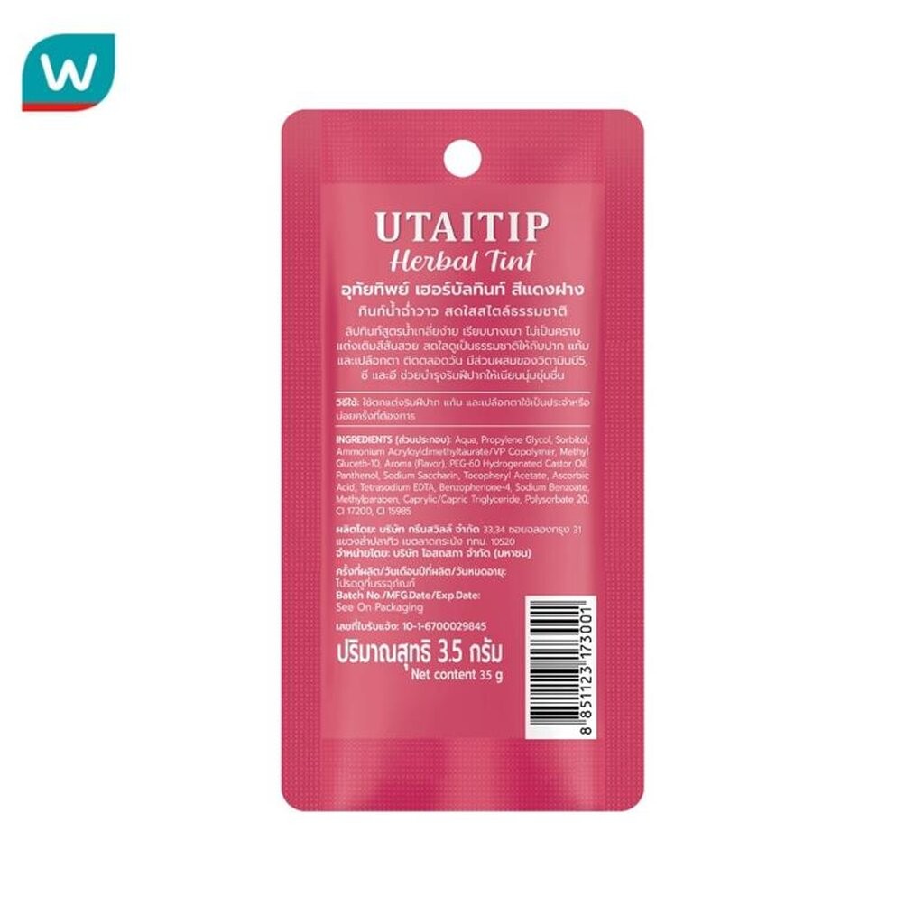 Utaitip อุทัยทิพย์ เฮอร์บัล ทินท์ แดง ฝาง 3.5 กรัม ลิปทินท์น้ำฉ่ำวาว สดใส