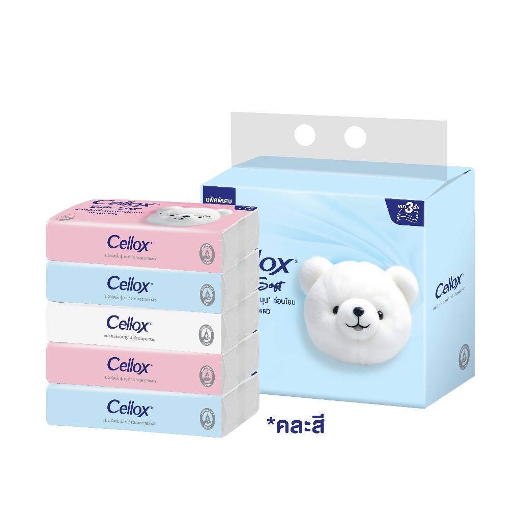 เซลล็อกซ์ กระดาษเช็ดหน้า 3 ชั้น ซาติน ซอฟท์แพค แพ๊ก 4+1 Cellox 3ply satin soft pack 4+1