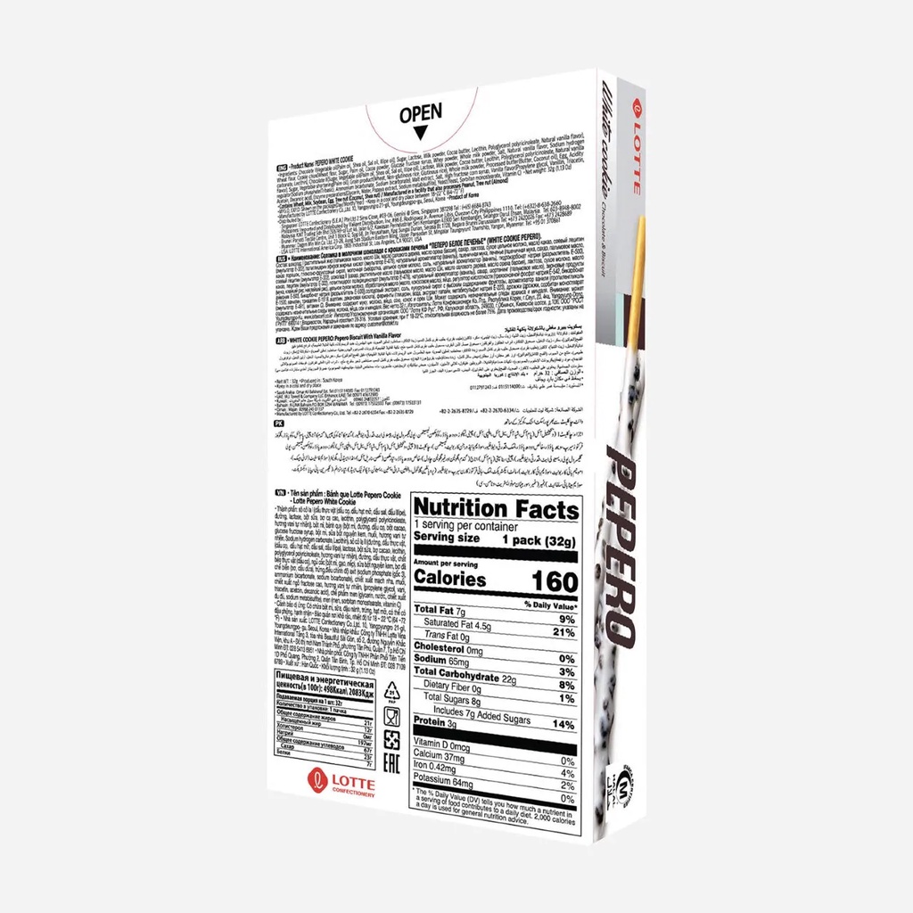 ไวท์ ช็อกโกแล็ด คุกกี้ เปปเปโร 32 กรัม/Lotte Pepero White Cookie Cream