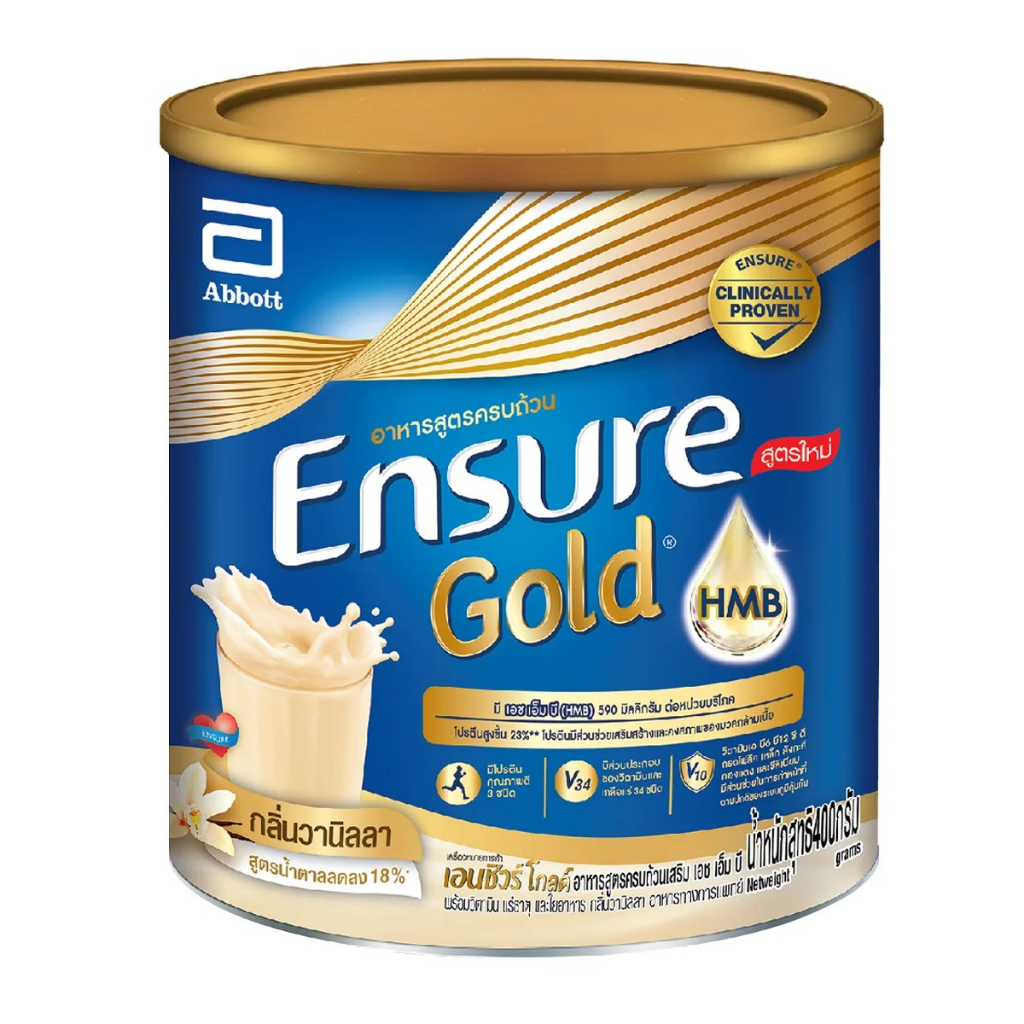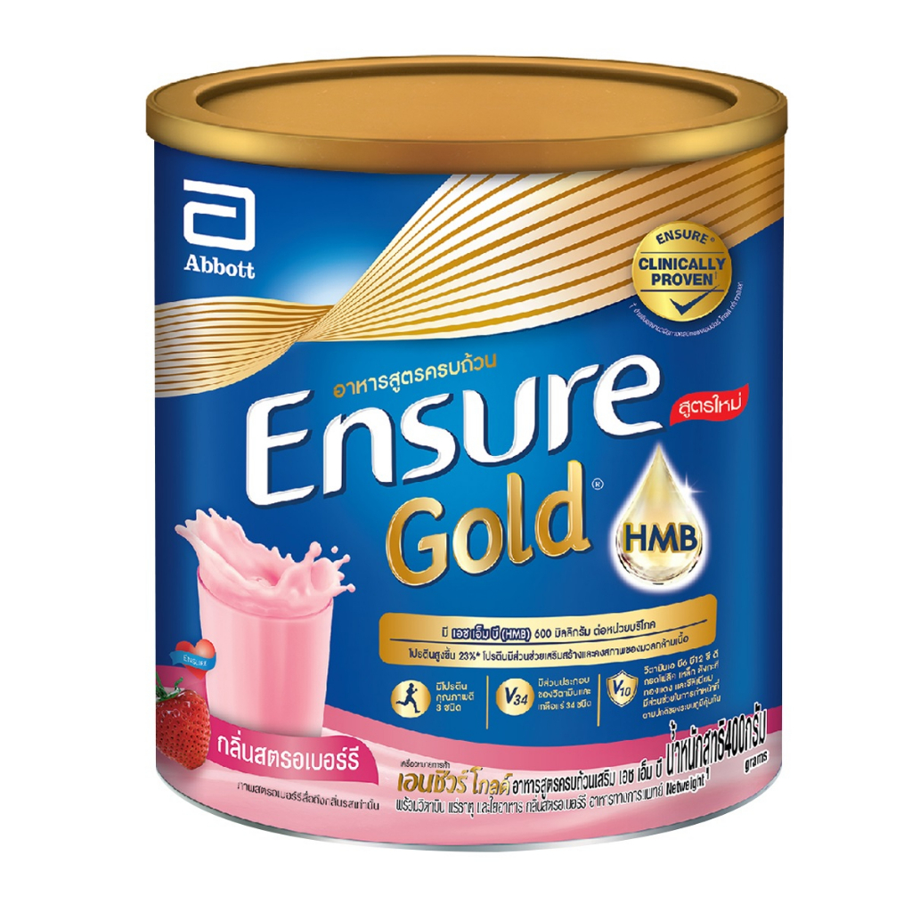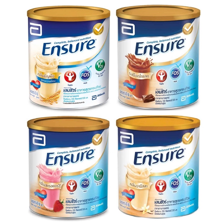 Ensure Gold เอนชัวร์ ขนาด 380 กรัม กลิ่น Vanilla วานิลลา / Strawberry สตรอเบอร์รี่ / Chocolate ช็อคโกแลต / Wheat ธัญพืช