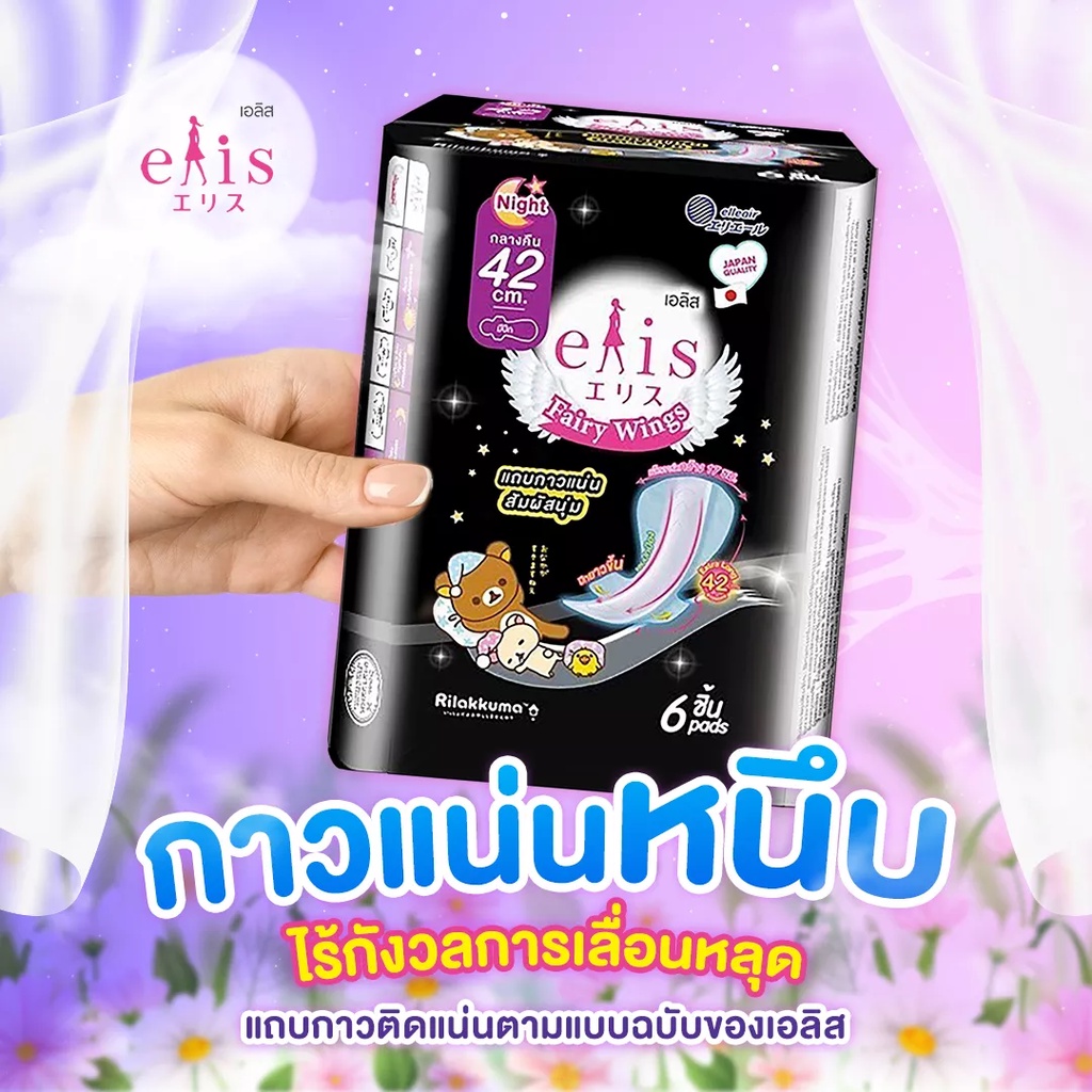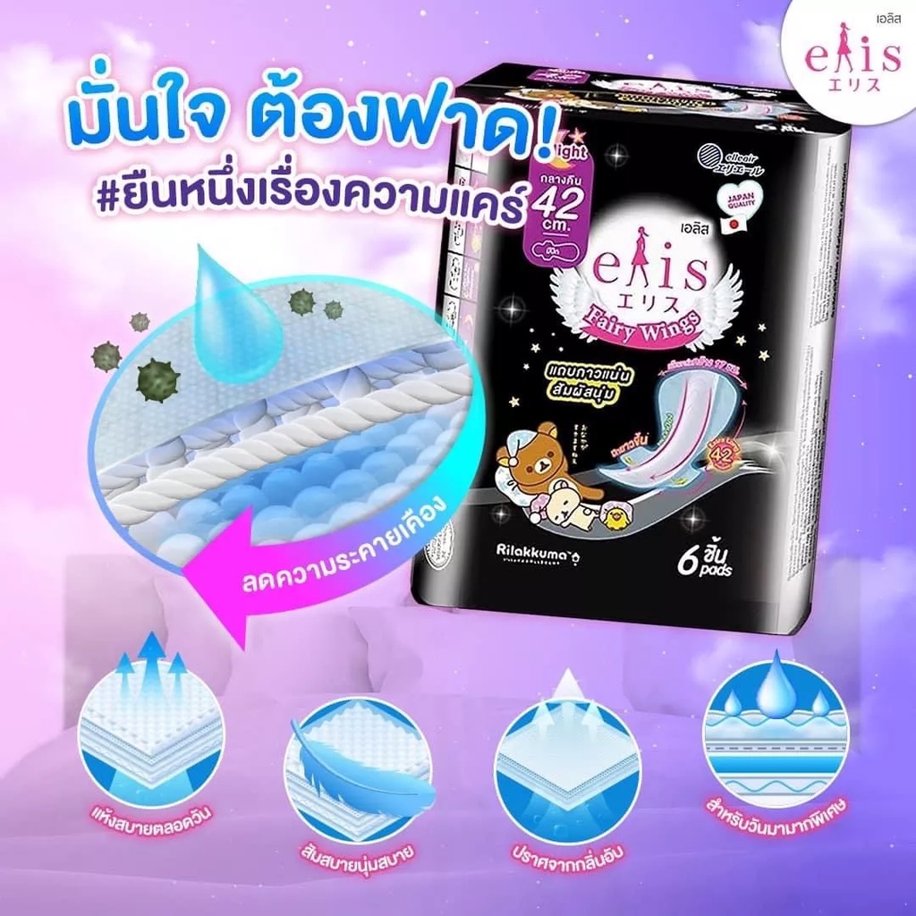 ผ้าอนามัย เอลิส แฟรี่วิงส์ 42 ซม. 6 ชิ้น/Elis Fairy Wing 42cm. Night 6 Pcs.