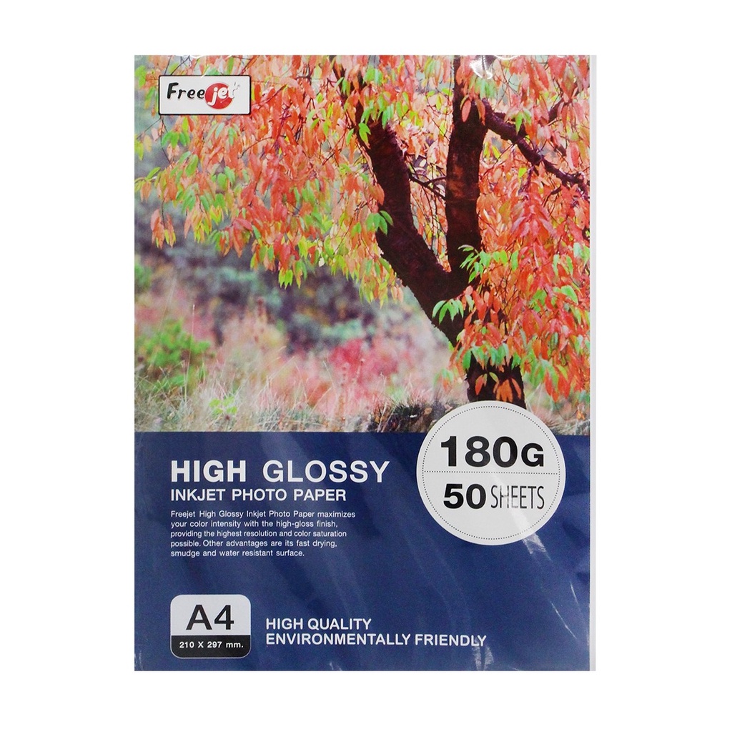 FREE JET กระดาษ High Glossy 180 แกรม (แพ็ค 50 แผ่น) |ZWG|
