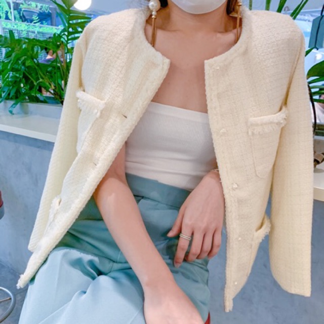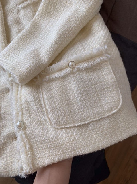 Weftloom Millie Cardigan เสื้อคลุมแขนยาวผ้าทวีต สีครีมไข่มุก pearl