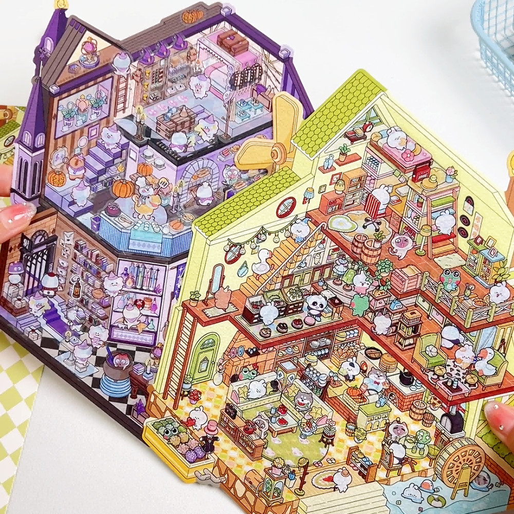 Wei 4 ชิ้น [SUPER BIG 2.0 Series] Magic House ภูมิทัศน์สติกเกอร์กันน้ํา PET สติกเกอร์ Scrapbooking วัสดุสมุดภาพสามมิติ 3D