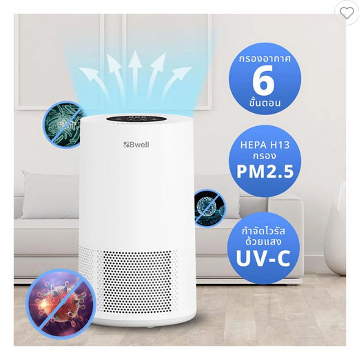 พร้อมส่ง กำจัดไวรัสด้วยแสง UV ยับยั้งโควิด19 เครื่องฟอกอากาศ BWELL AP-8119US 30 ตารางเมตร