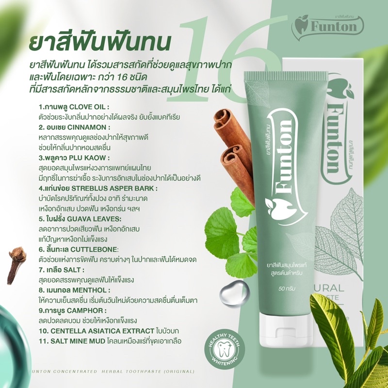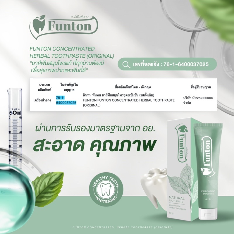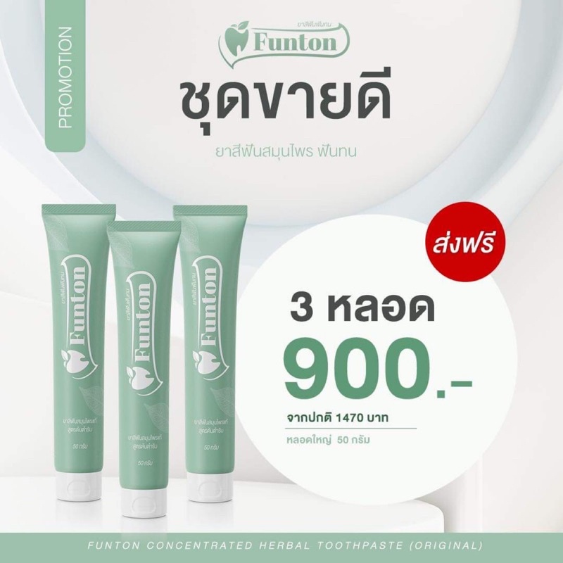 ฟันทน Funton ยาสีฟันสมุนไพรดูแลช่องปากและฟัน (3หลอด)