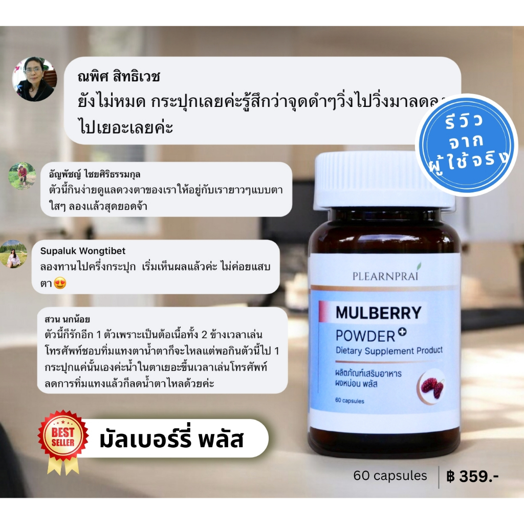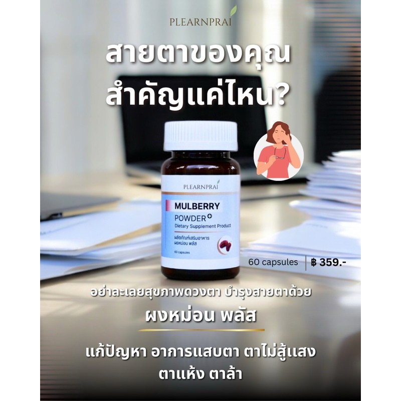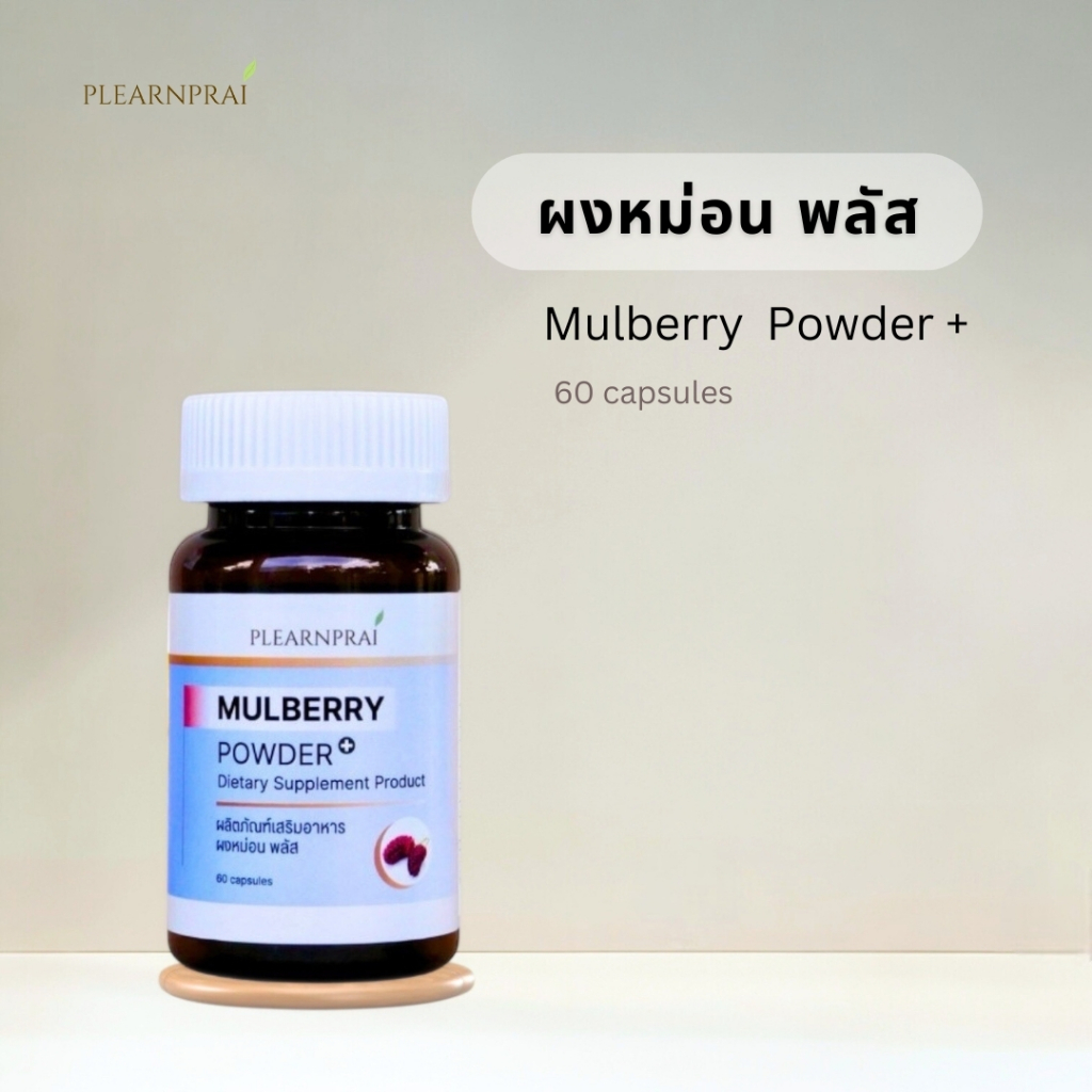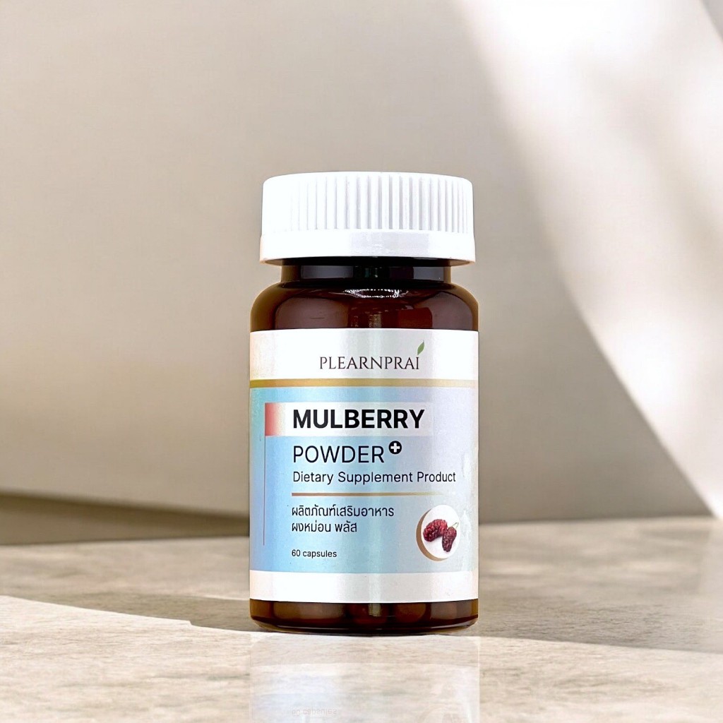 Plearnprai Organic เพลินไพร ออร์แกนิค ผลิตภัณฑ์เสริมอาหาร ผงหม่อน พลัส Mulberry Powder Plus+ (60 Capsules)