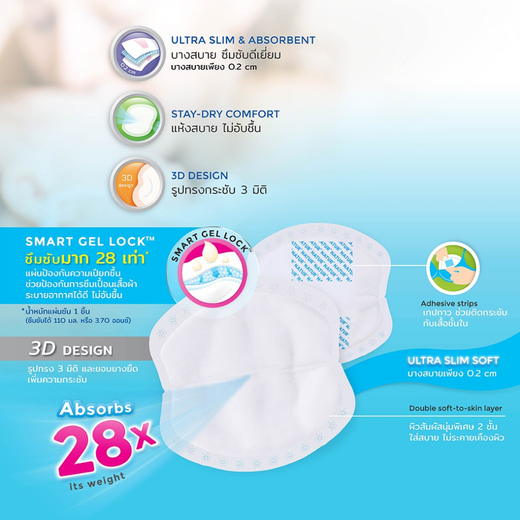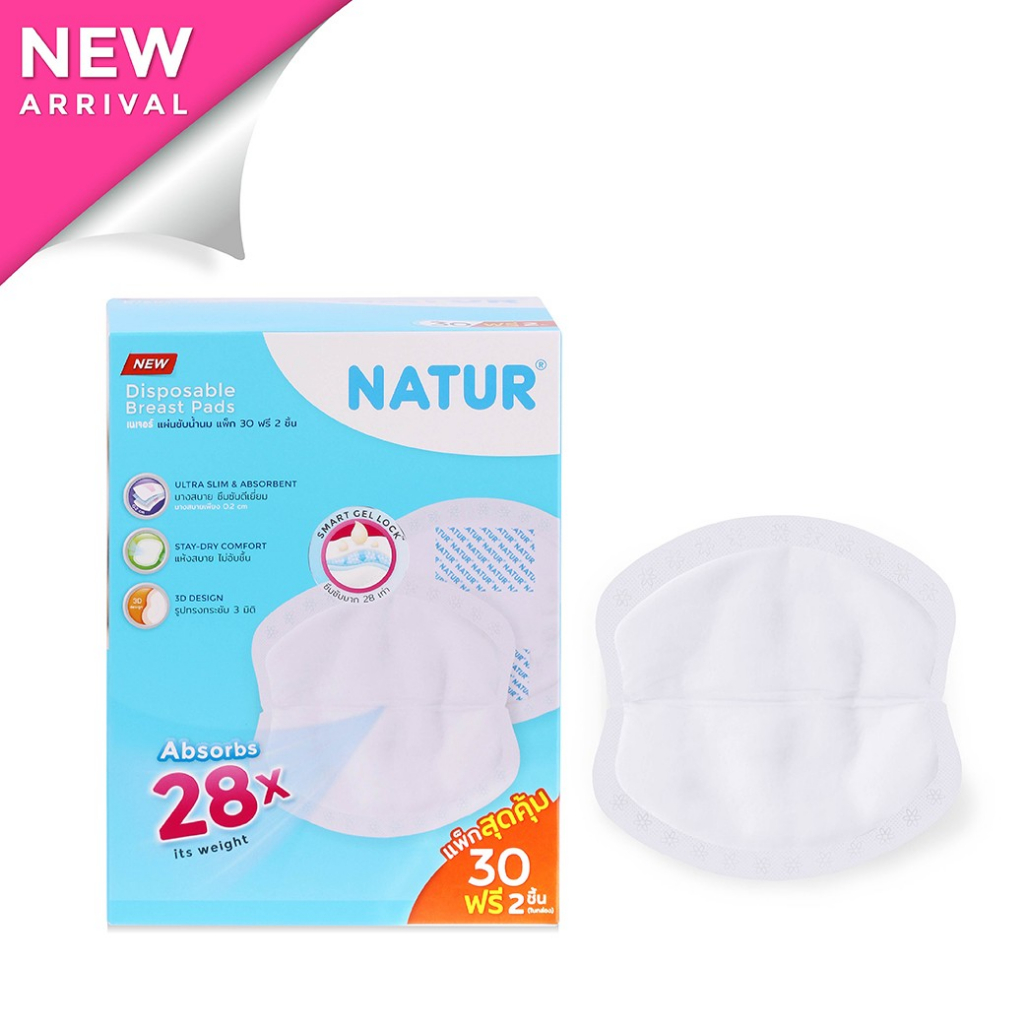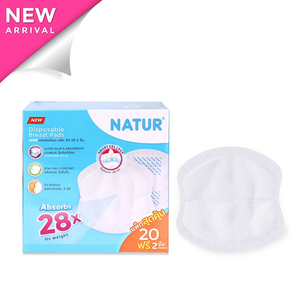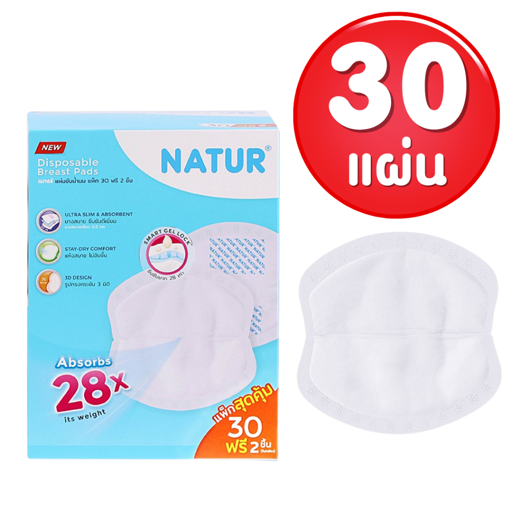 Natur แผ่นซับน้ำนม เนเจอร์ (แพ็ก 20/30+ฟรี 2 แผ่น) ผิวสัมผัสนุ่ม แห้งสบาย ซึบซับได้มากถึง 25 เท่า