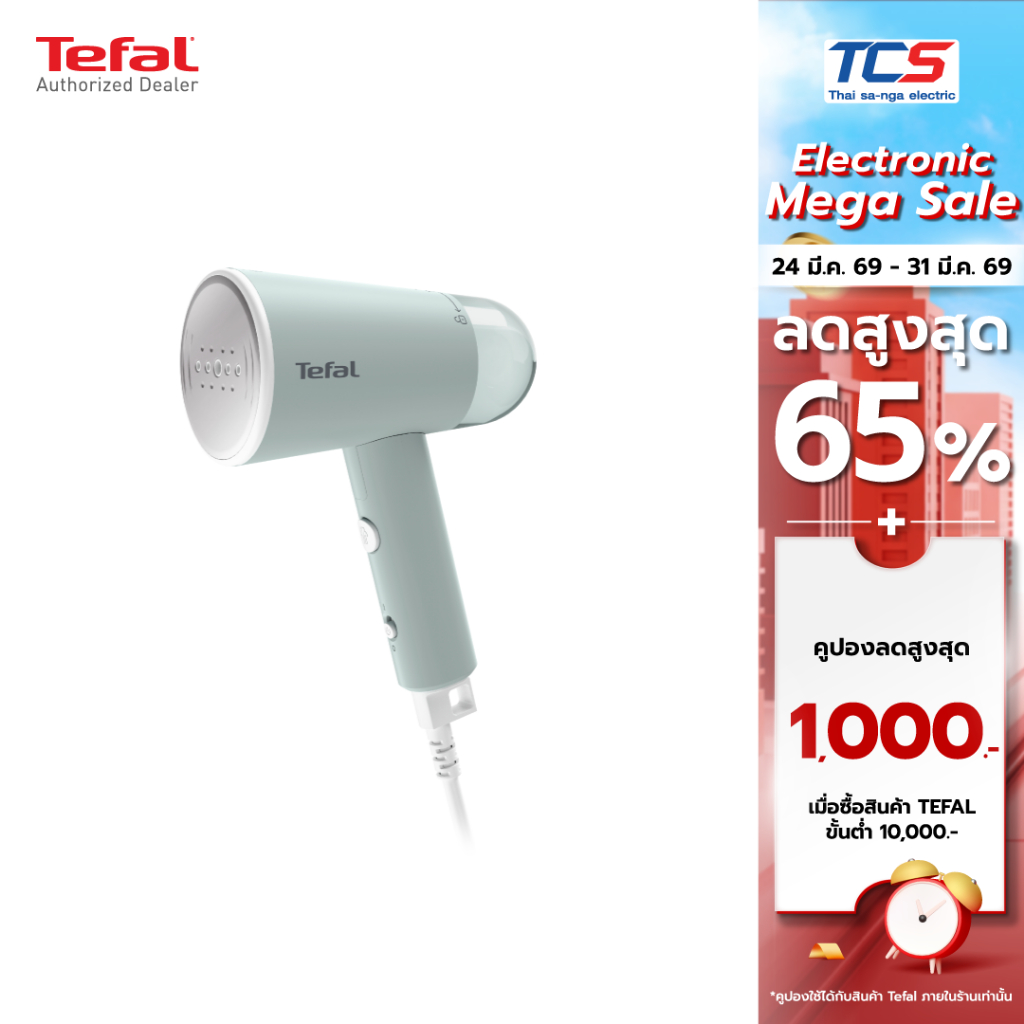 Tefal เครื่องรีดถนอมผ้าแบบพกพา รุ่น DT1034E1 | กำลังไฟ 1200W สายไฟยาว 2 M รับประกันศูนย์ไทย