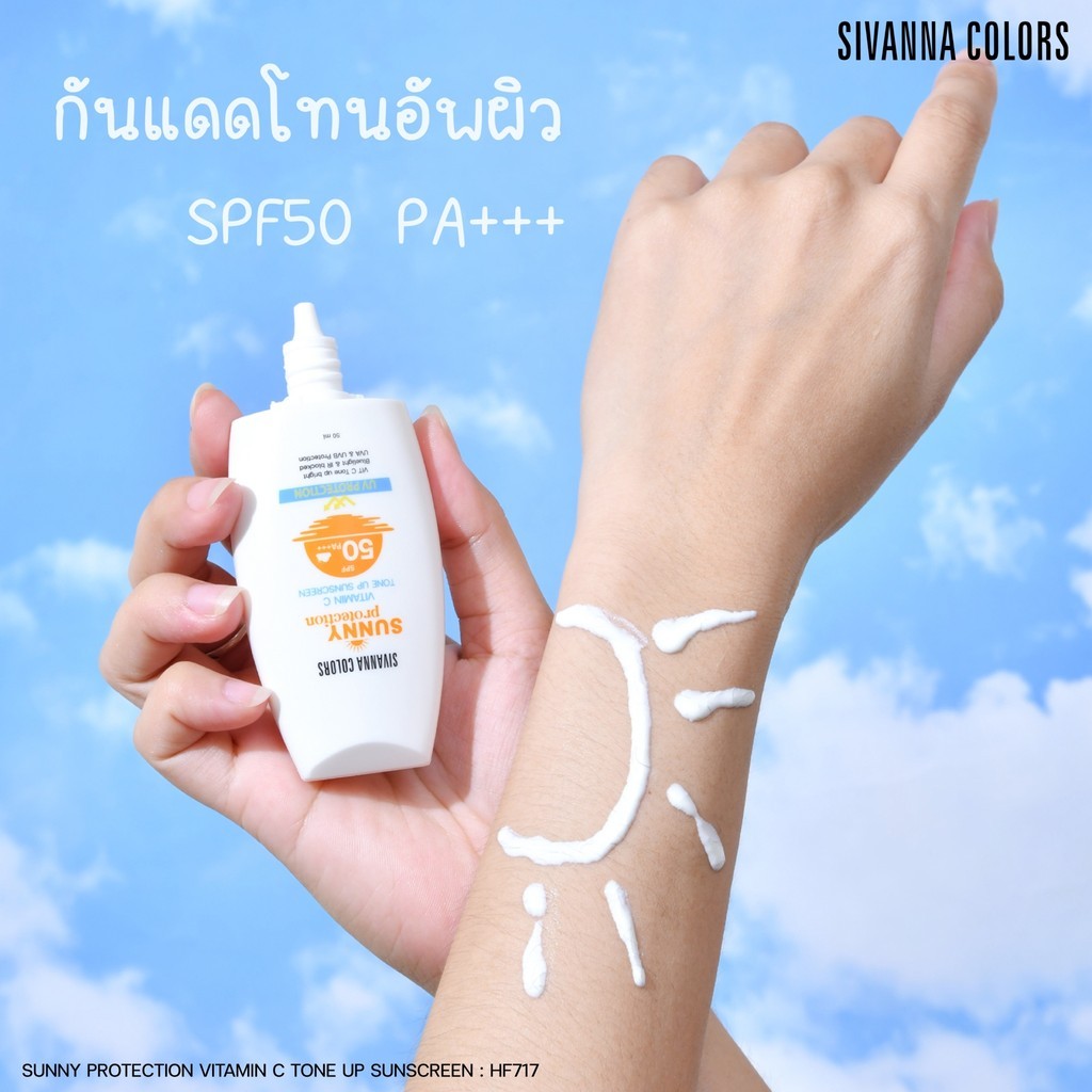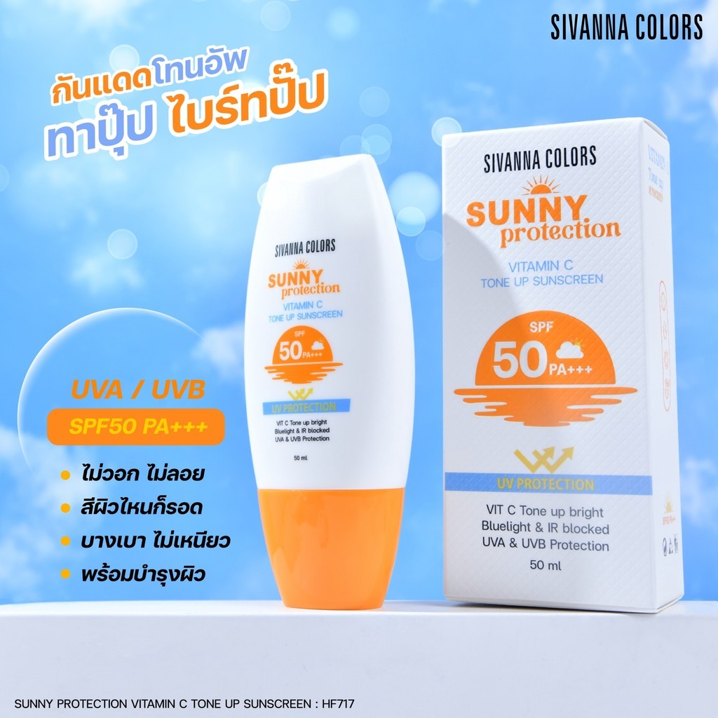 🔥แท้/ถูกที่สุด/ไลฟ์ทุกวัน🔥HF717 กันแดด (1ชิ้น) Sivanna Colors Sunny Protection Vitamin C Tone Up SunScreen SPF50 PA+++
