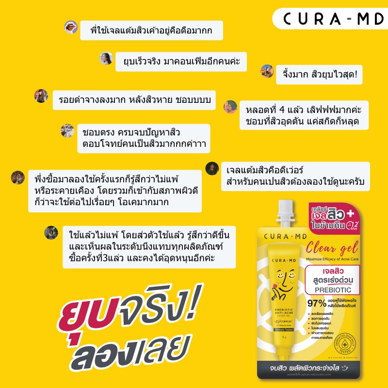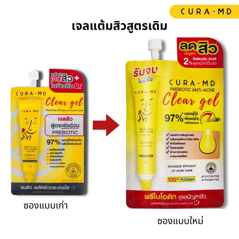CURA-MD เจลแต้มสิว สูตรเร่งด่วน สิวยุบไว ในข้ามคืน Prebiotic Anti-Acne Clear Gel 4 กรัม