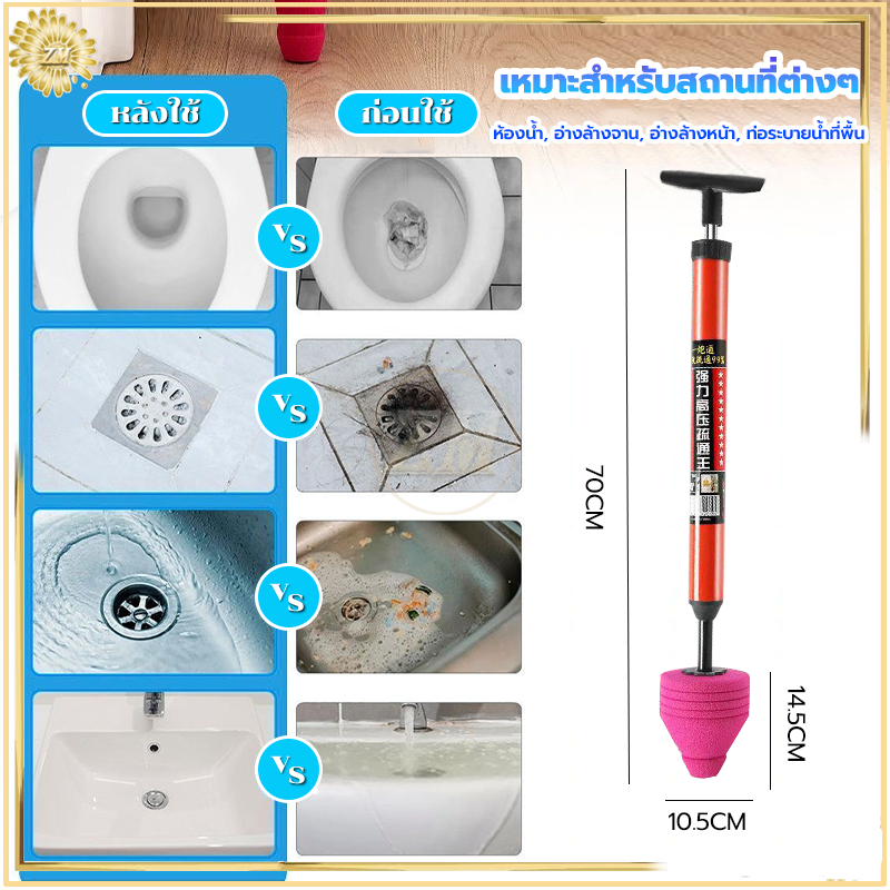 ที่ดูดส้วม ส้วมตัน ท่อดูดส้วม ตัวปั๊มขจัดสิ่งอุดตันในท ่อ เพียงแค่ดันและดึง แก้การอุดตันใน 1 วินาที แรงดันใหญ่ ใช้งานง่าย