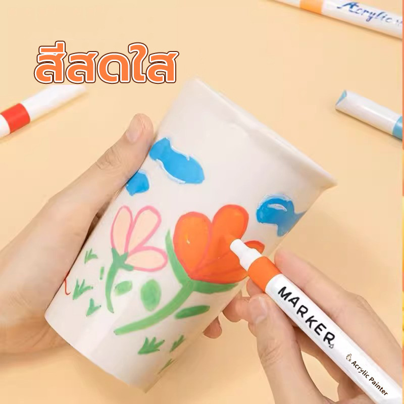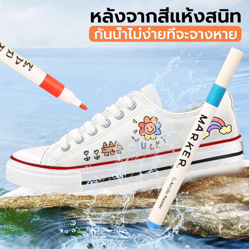 ปากกาอะคริลิค กันน้ำ เครื่องหมาย 12/24/36/48สี ปากกามาร์กเกอร์อะคริลิค ปากกามาร์กเกอร์