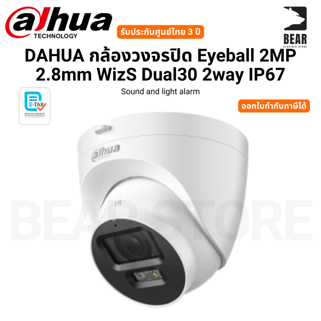 DAHUA กล้องวงจรปิด Eyeball 2MP 2.8mm WizS Dual30 2way IP67 Sound and light alarm รับประกันศูนย์ไทย 3 ปี