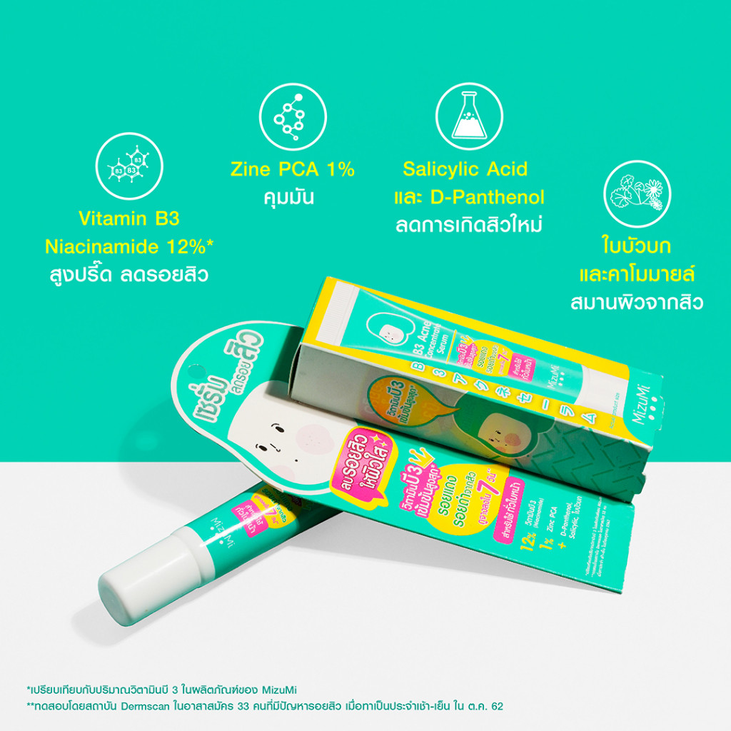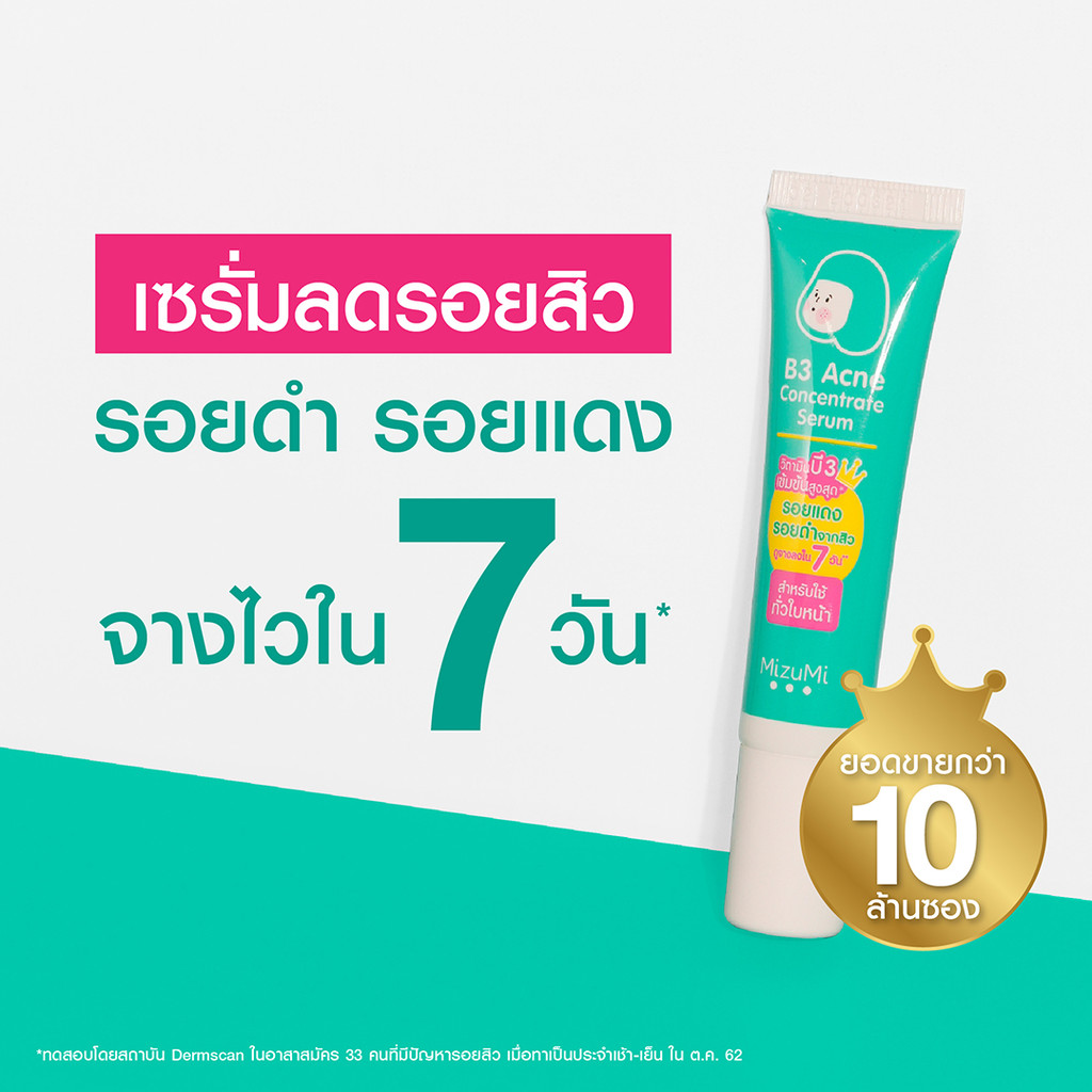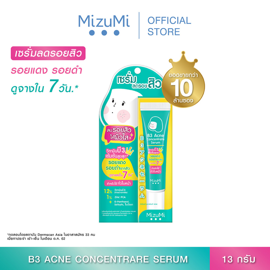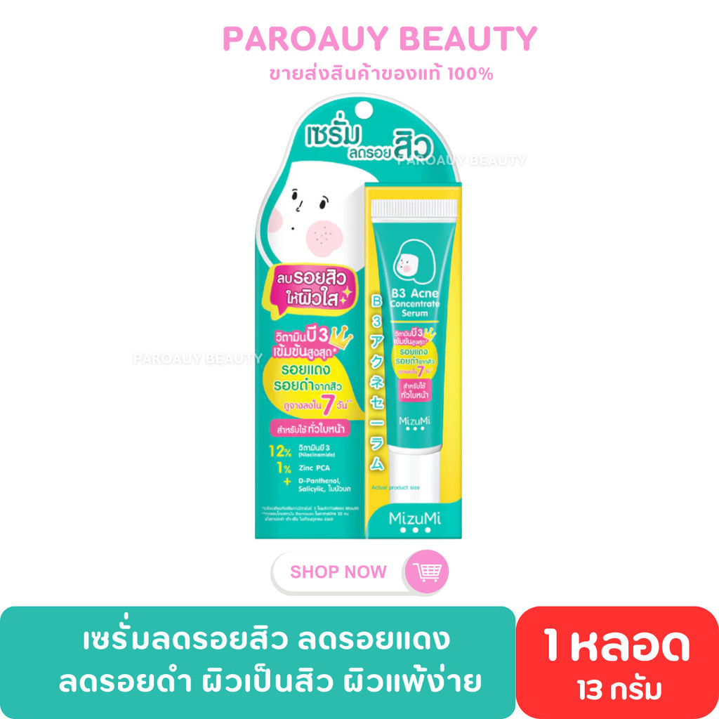 เซรั่มลดรอยสิว┇MizuMi B3 Acne Concentrate Serum(13g x 1 หลอด) ลดรอยแดง ลดรอยดำ ผิวเป็นสิว ผิวแพ้ง่าย