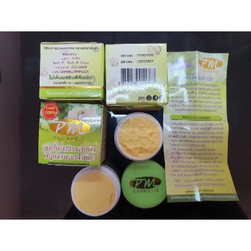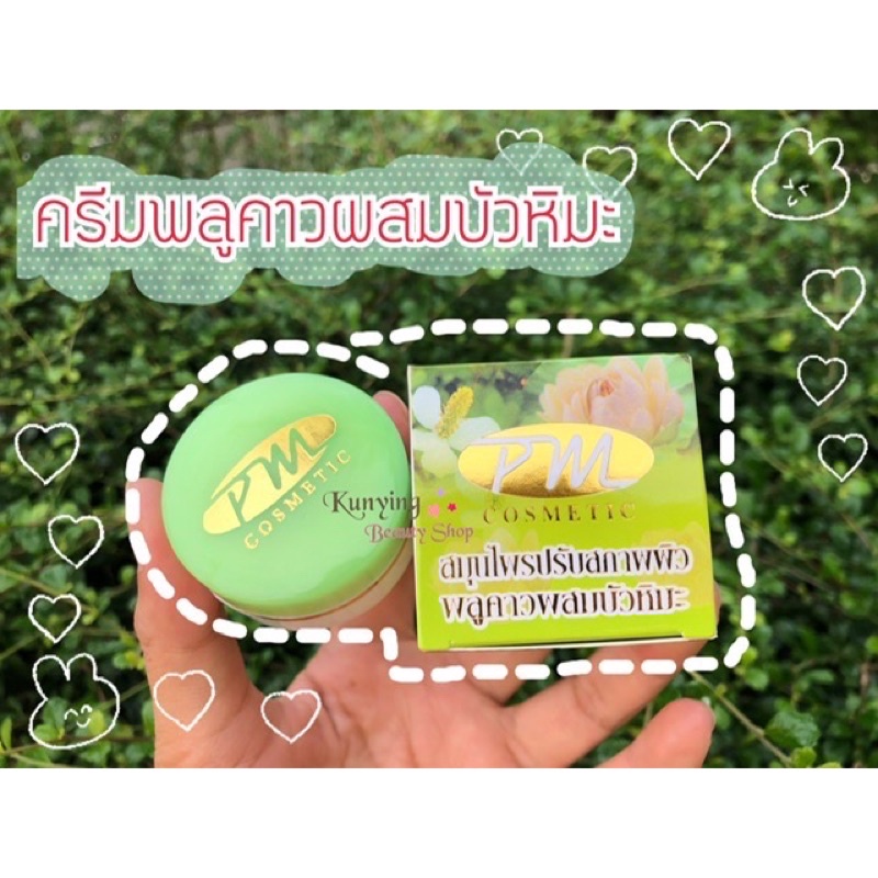 6 ตลับ ครีมพลูคาวผสมบัวหิมะ สติ๊กเกอร์ทอง ใหม่ PM Cosmetic พีเอ็ม คอสเมติก ของแท้ พลูคาวผสมบัวหิมะ 6 ตลับ