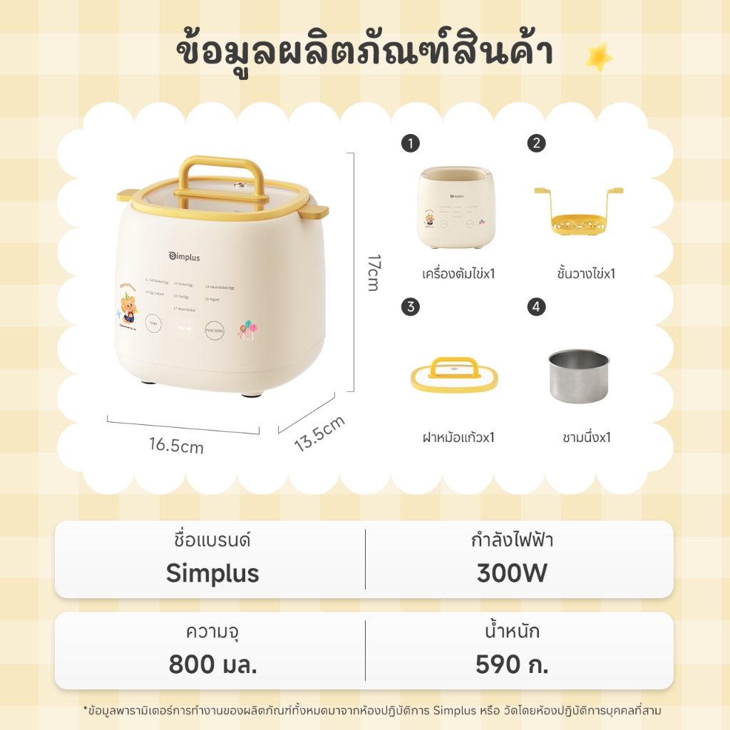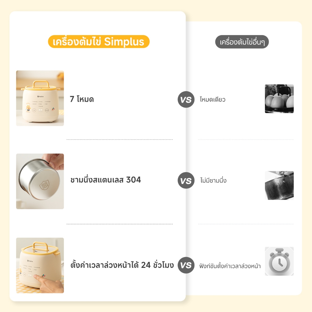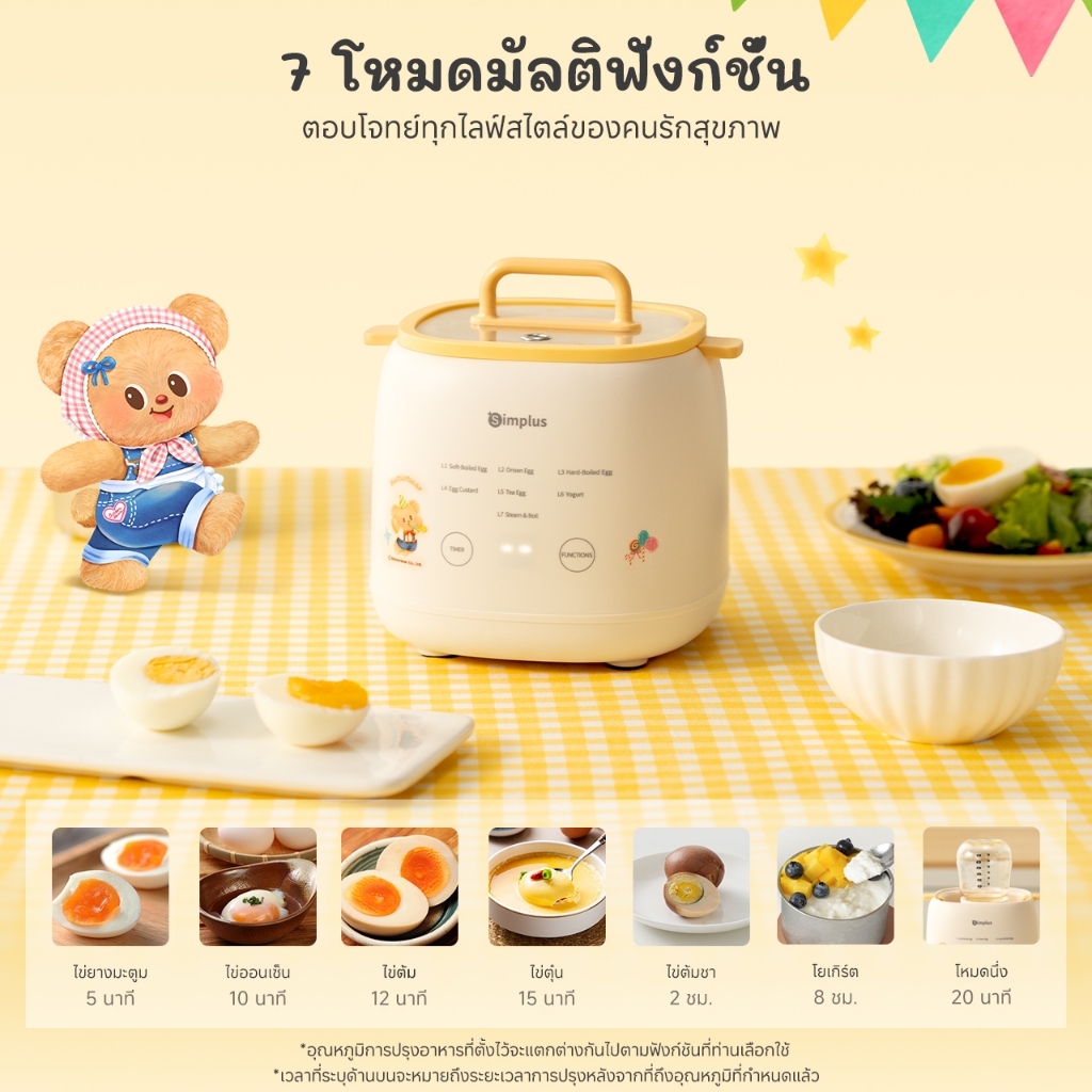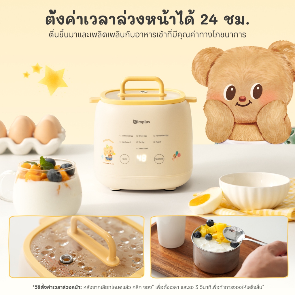 Simplus x Butterbear เครื่องต้มไข่อเนกประสงค์ 7 โหมด ตั้งเวลา 24 ชม. หน้าจอสัมผัส เครื่องต้มไข่ DZEG006