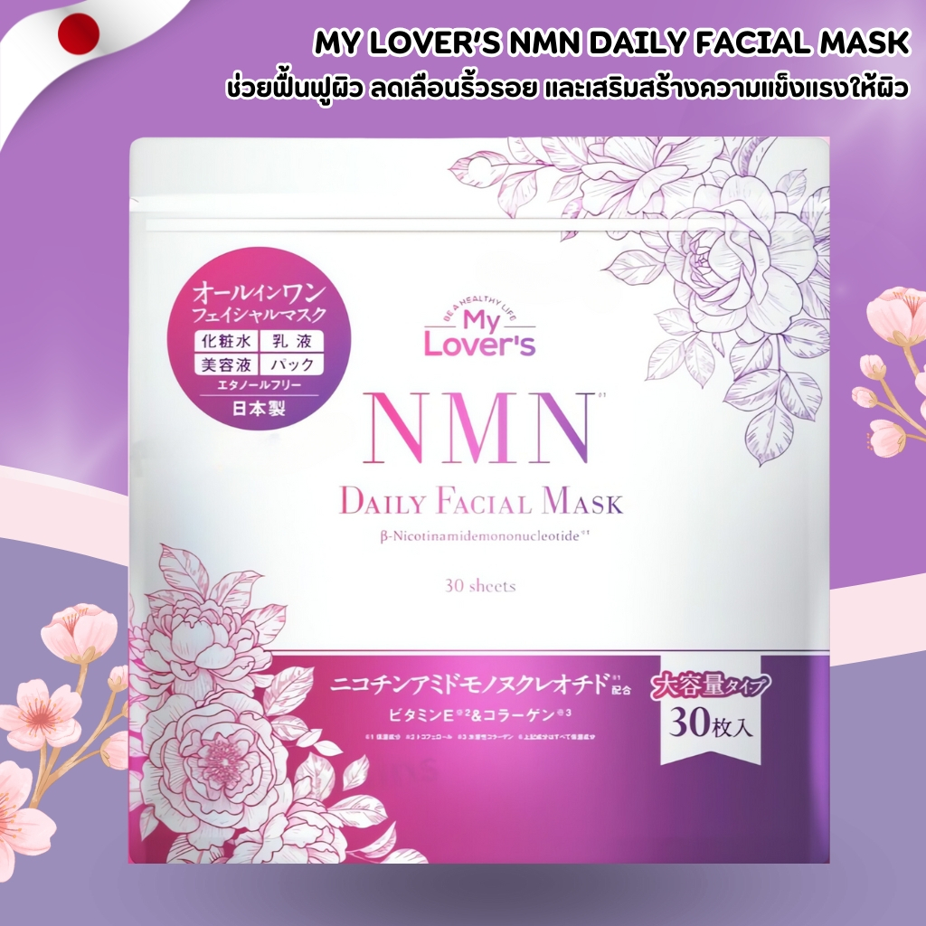 My Lover’s NMN Mask 🧖♀️ มาสก์หน้า NMN บำรุงผิวล้ำลึก ฟื้นฟูผิวให้ดูอ่อนเยาว์ (30 แผ่น) No.Jp216