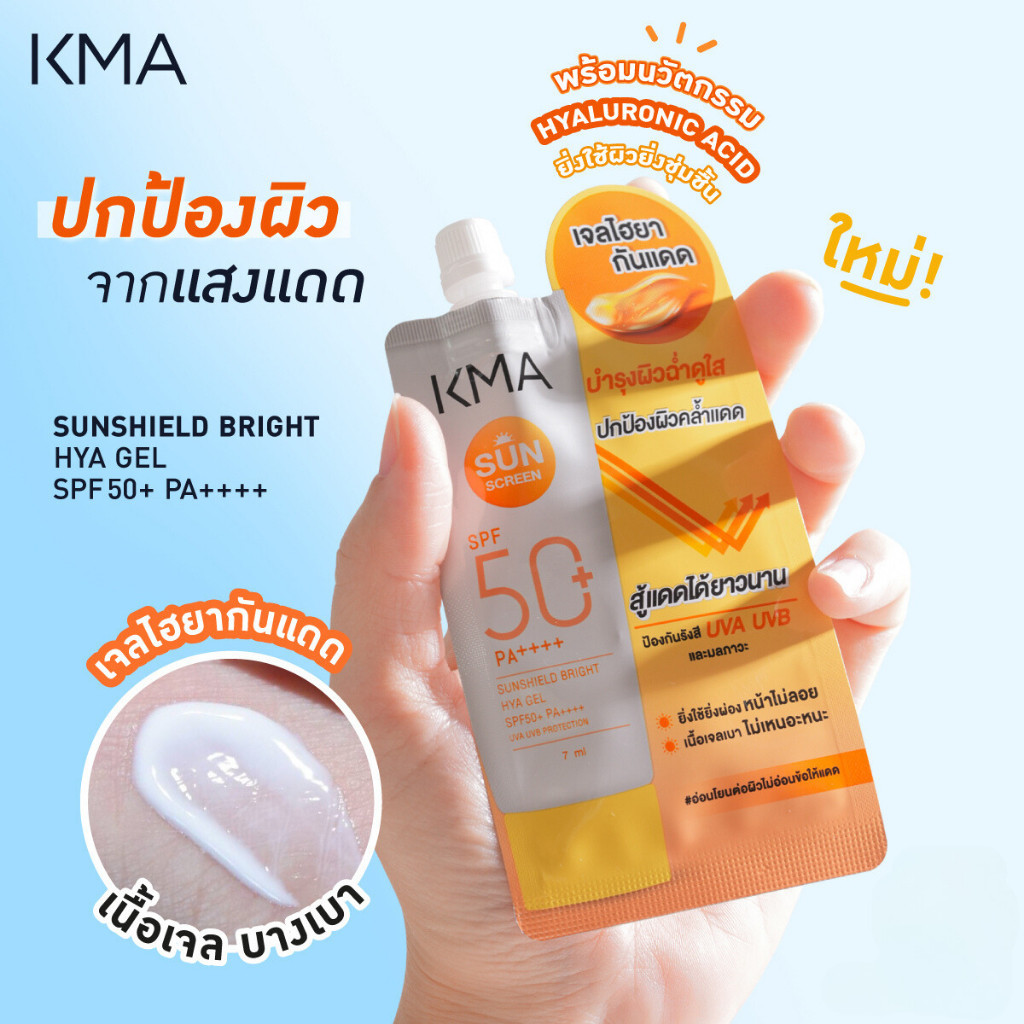 KMA เจลไฮยา กันแดด หน้าใส SPF50+PA++++ Sunshield Bright HYA Gel 7 ml. ยิ่งใช้ผิวยิ่งชุ่มชื้น ผิวฉ่ำ