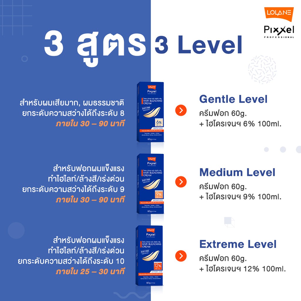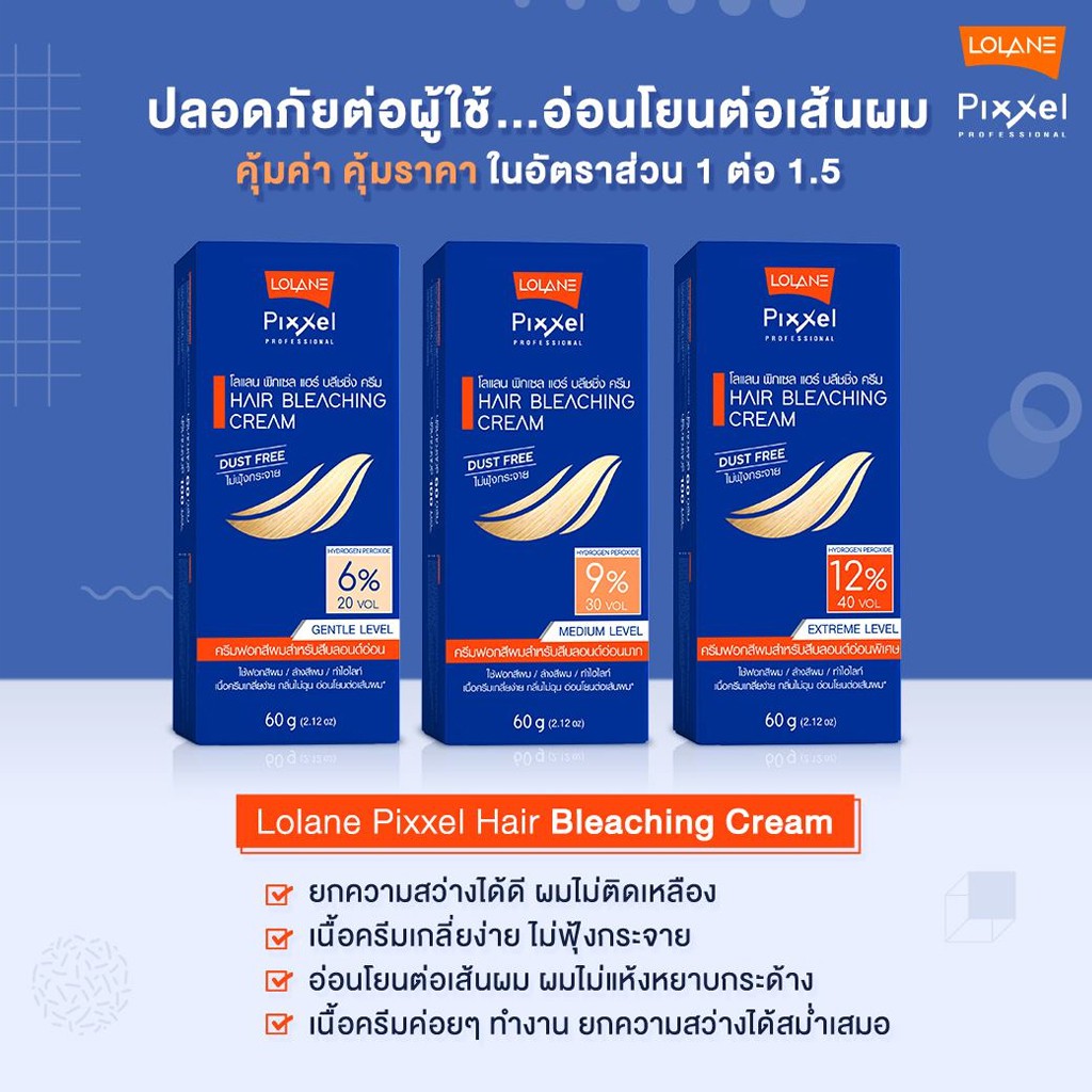 ชุดกัดสีผม ครีมฟอกสีผม โลแลน พิกเซล แฮร์ บลิชชิ่ง ครีม Lolane Pixxel Hair Bleaching Cream 60 g