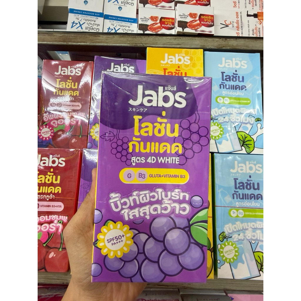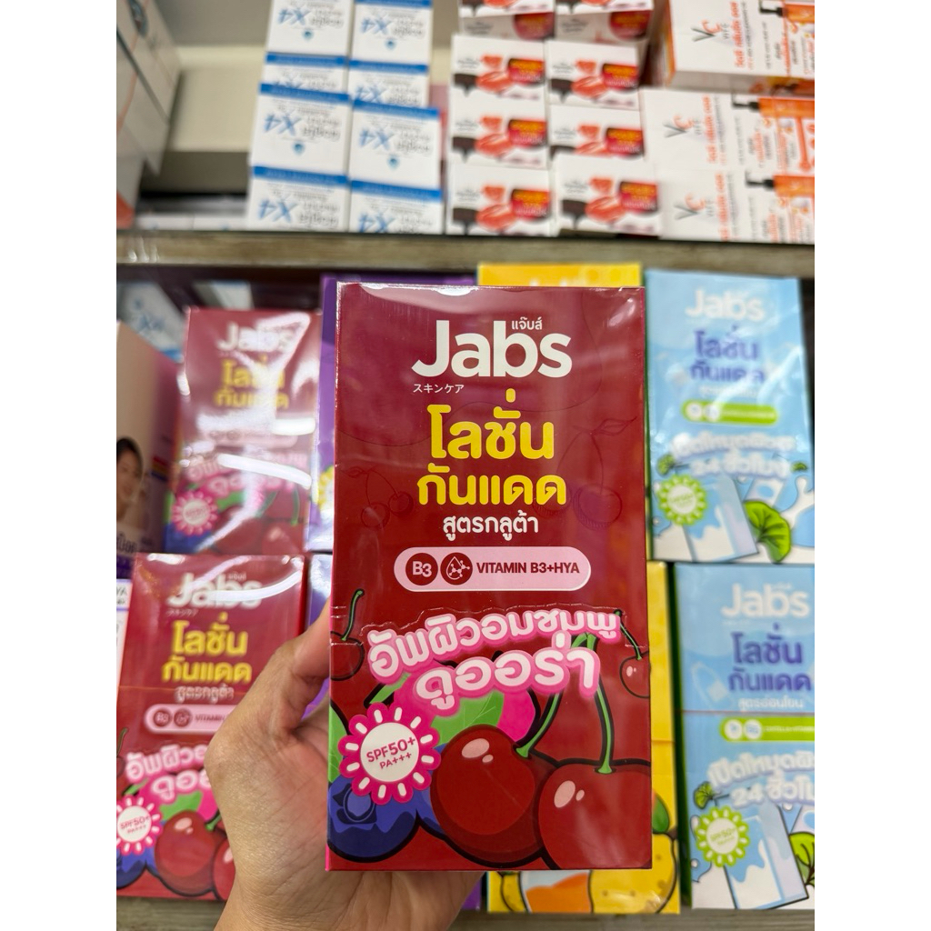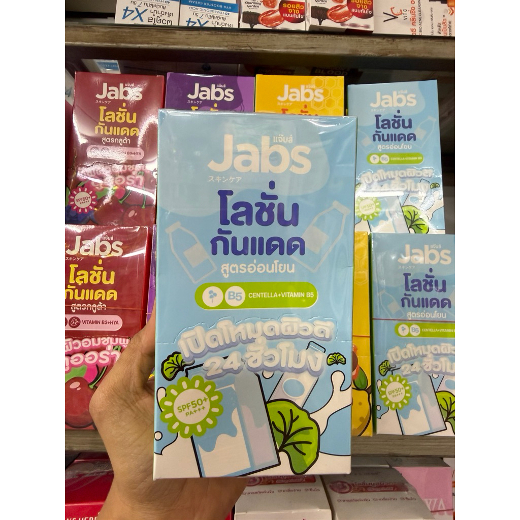 แจ๊บส์โลชั่นกันแดด(แบบซองยกกล่องx4ซอง)Jabs Lotion มี 4 สูตร