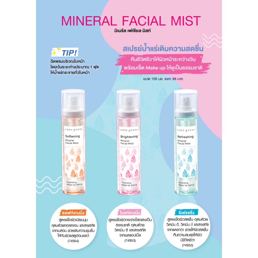 Cute Press Mineral facial mist water[100ml.]คิวท์เพลส สเปรย์น้ำแร่เติมความสดชื่น ช่วยเครื่องสำอางติดทนนานเป็นธรรมชาติ